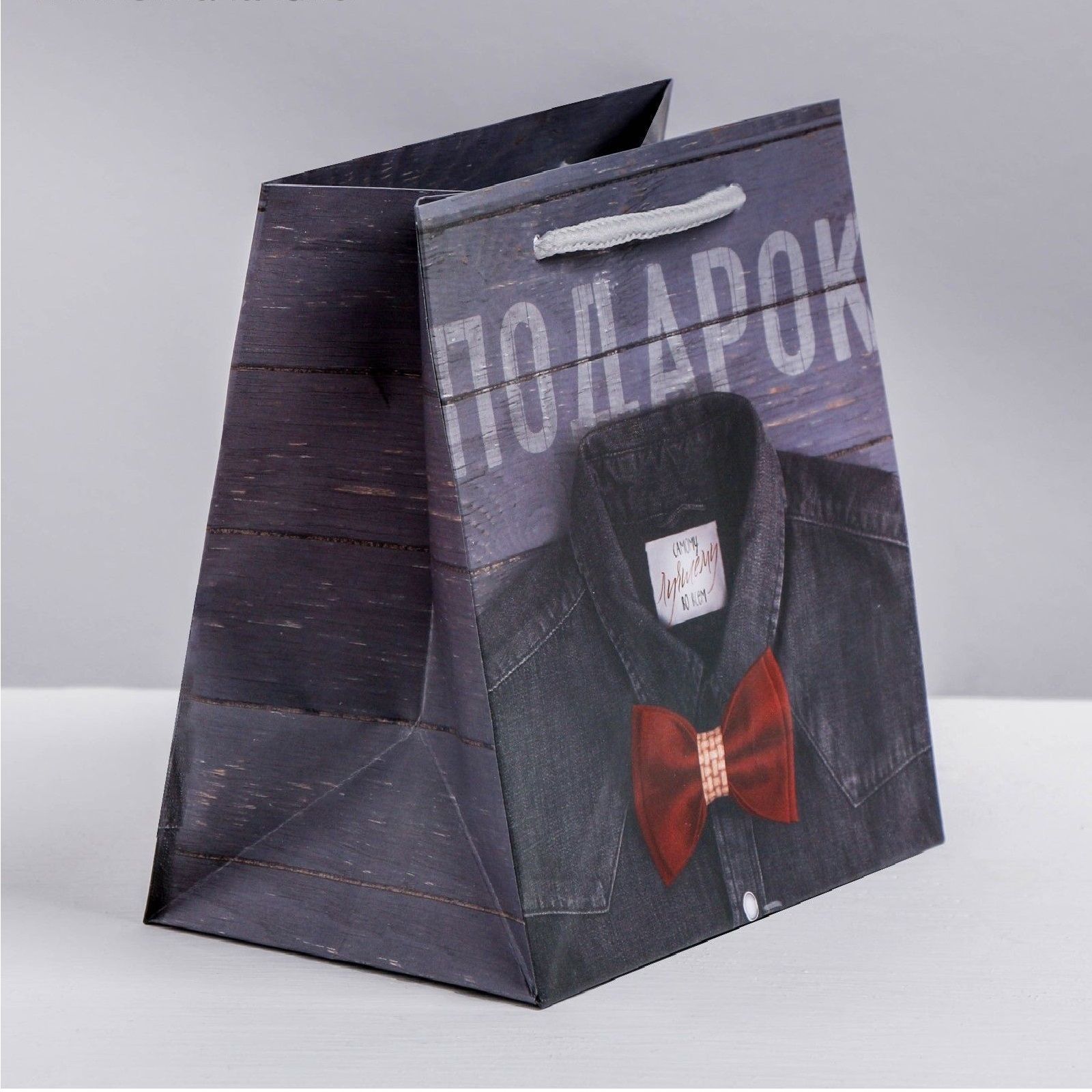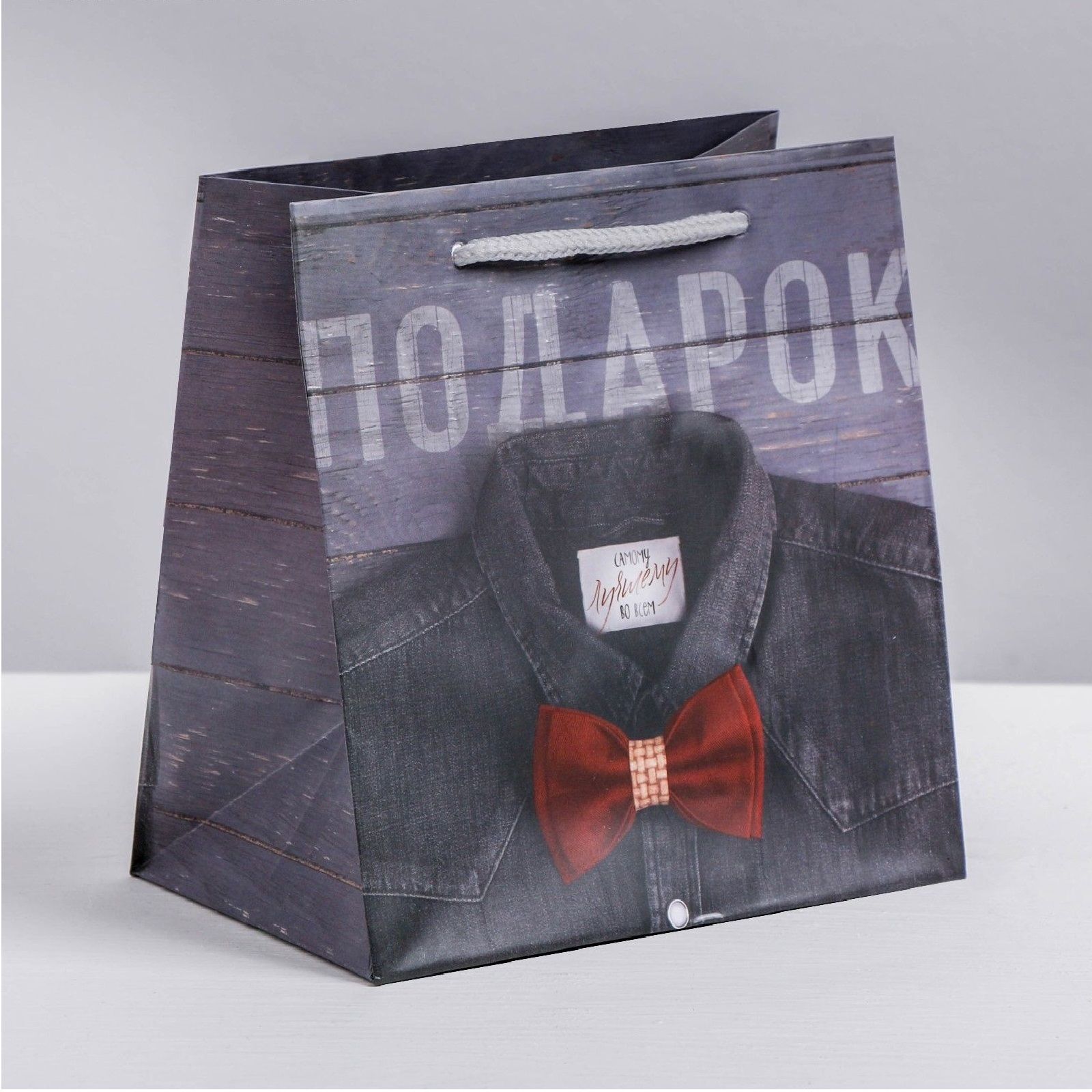 Ламинированный квадратный пакет «Мужской стиль» - 14 х 14 х 9 см.