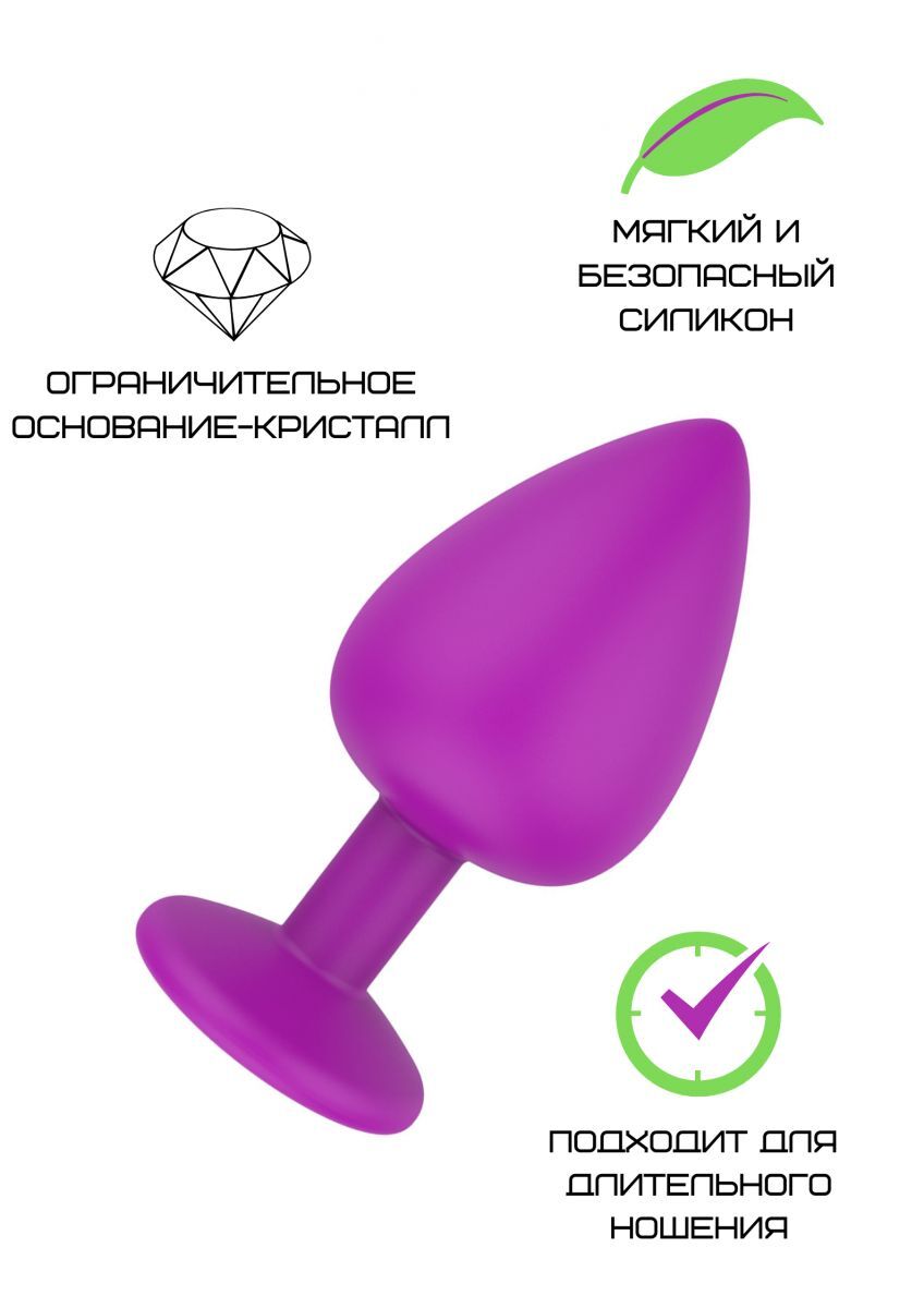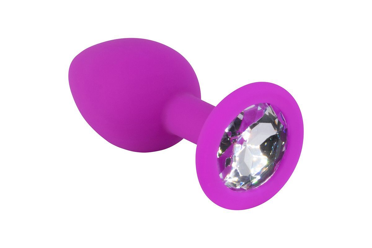 Лиловая малая силиконовая пробка с прозрачным кристаллом