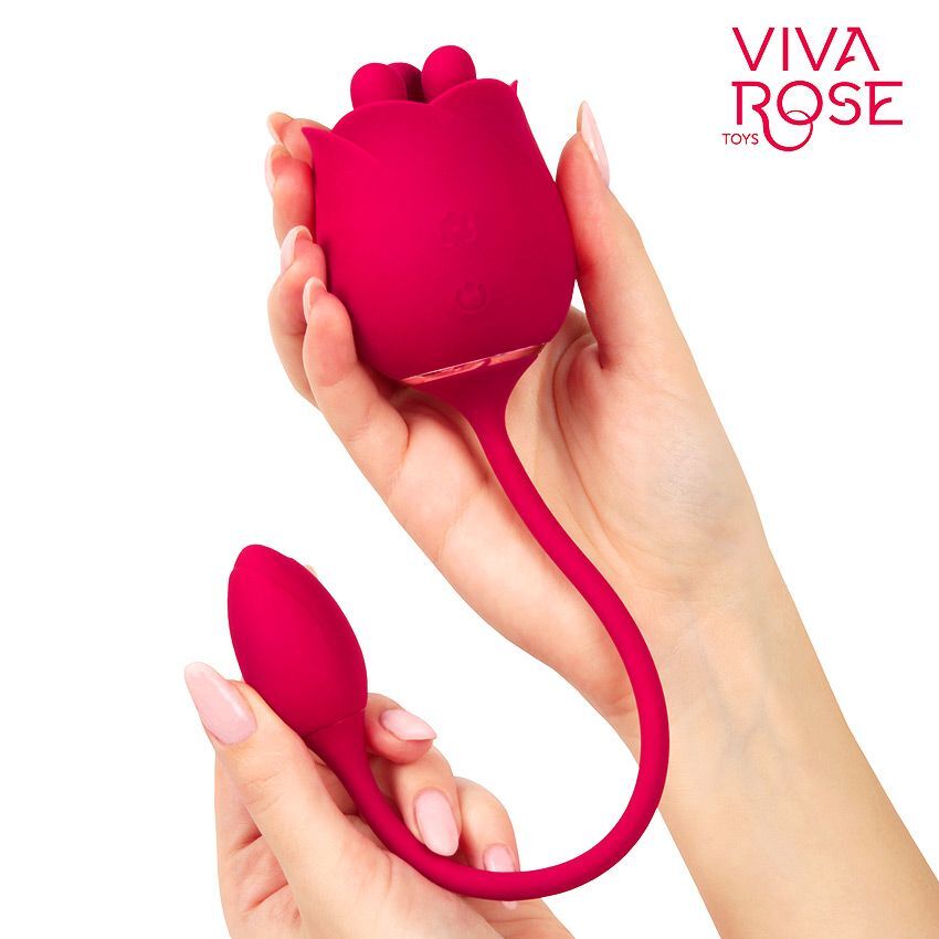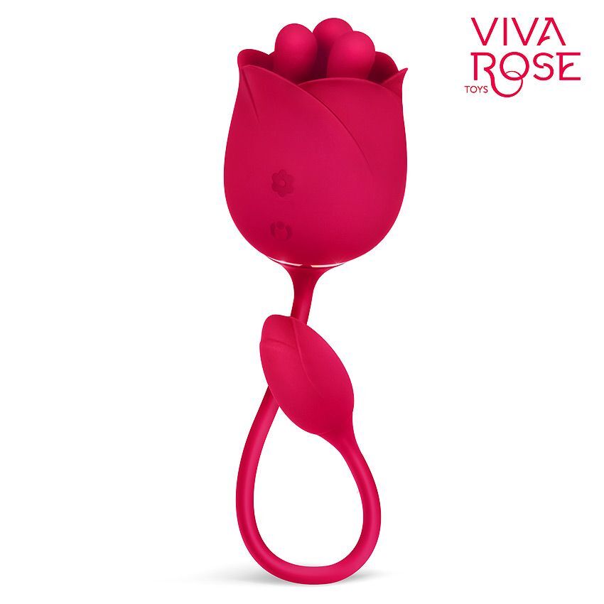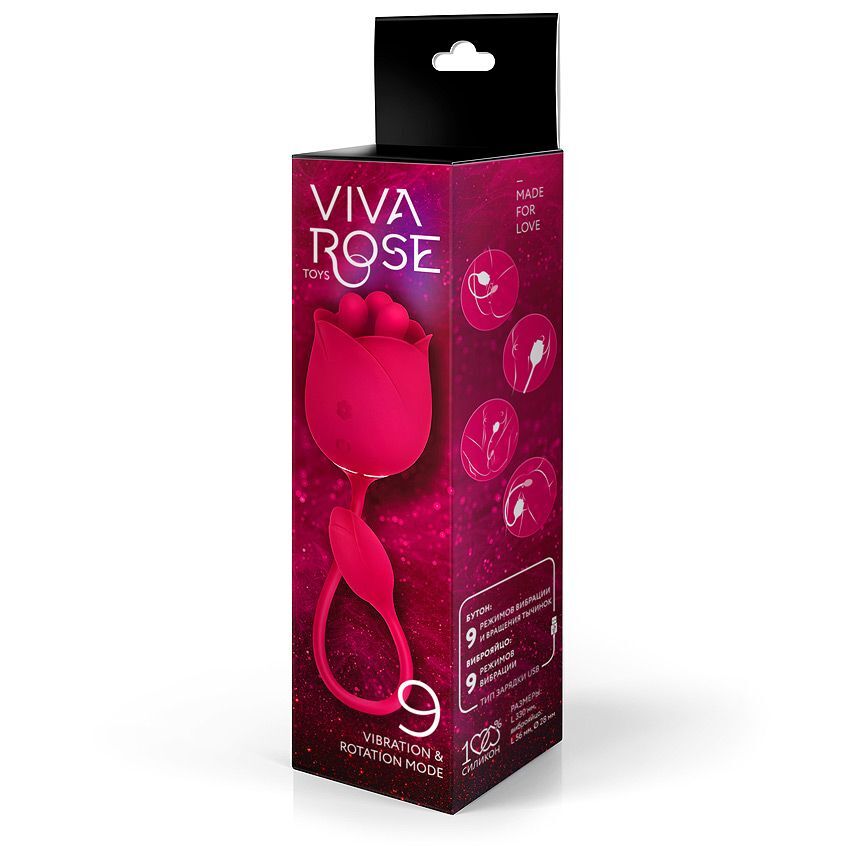 Малиновый вибростимулятор-бутон с вращающимися тычинками