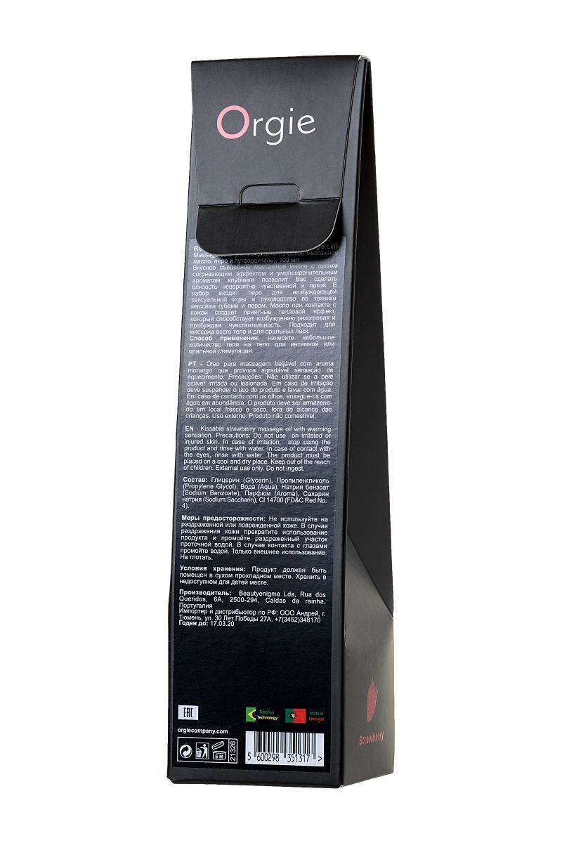 Массажное масло Orgie Lips Massage со вкусом клубники - 100 мл.