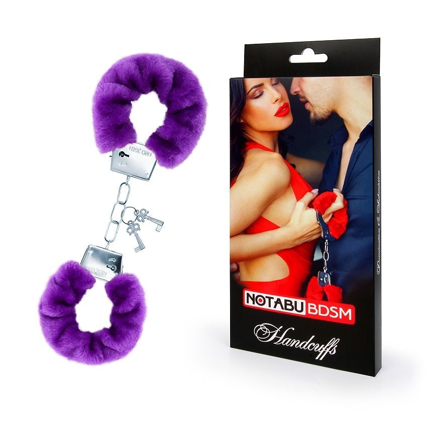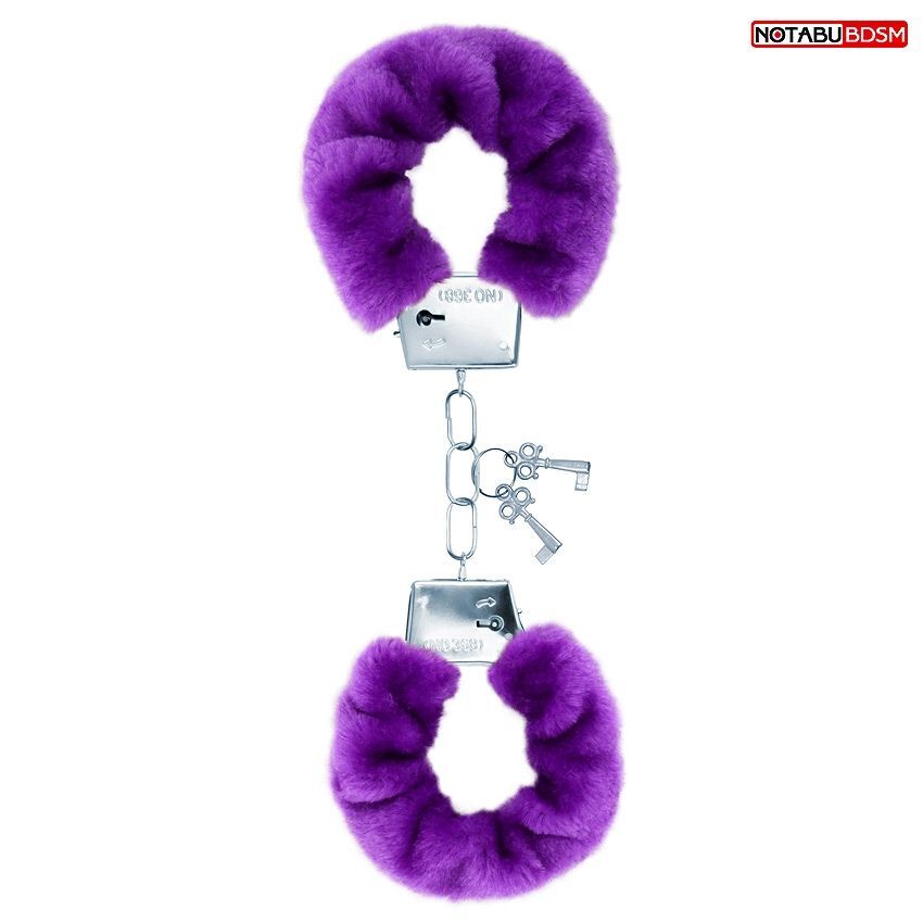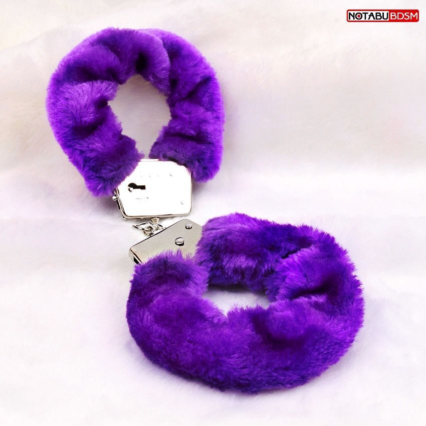 Металлические наручники с мягкой фиолетовой опушкой