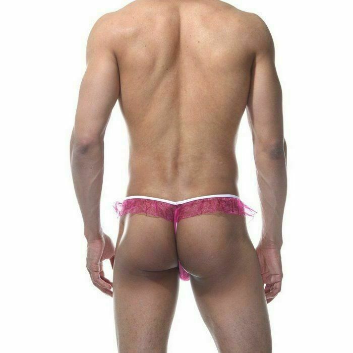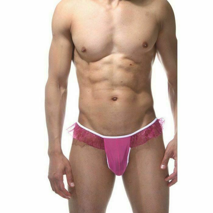Мужские розовые трусы-тонги с оборками