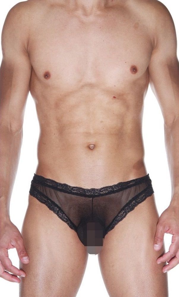 Мужские трусы-бразилиана с кружевной отделкой