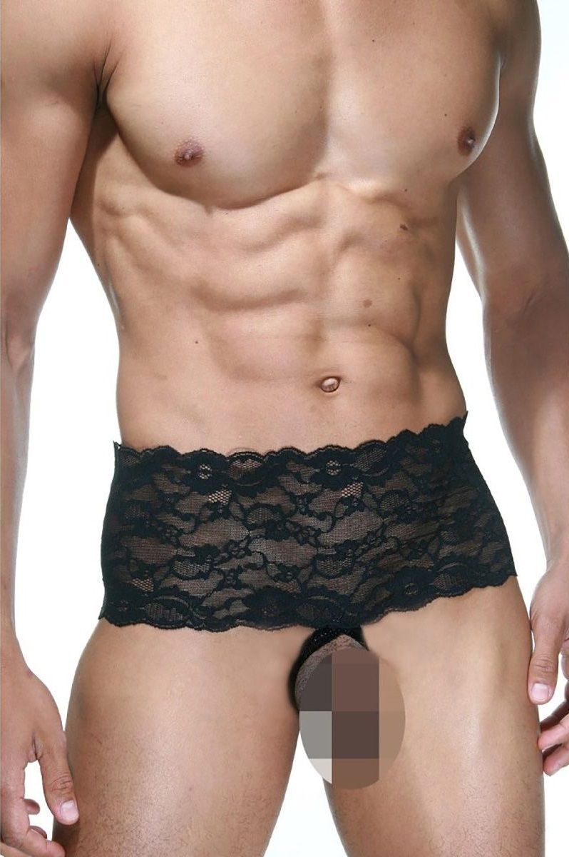 Мужские трусы с открытой интимной зоной и широким кружевным поясом