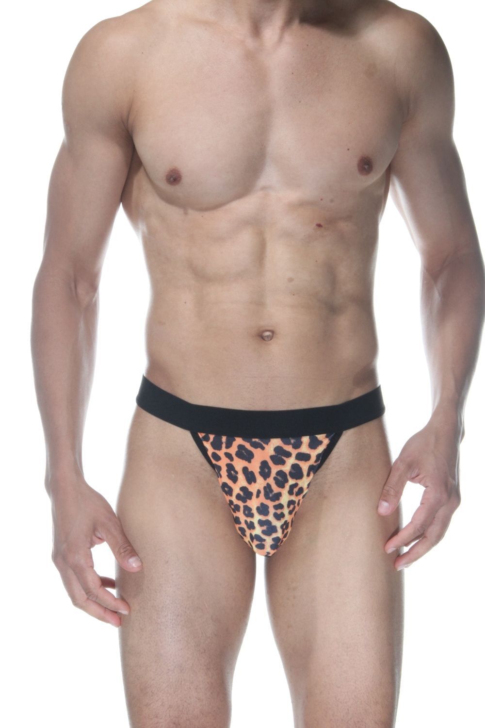 Мужские трусы-стринги с леопардовым принтом и широкой резинкой