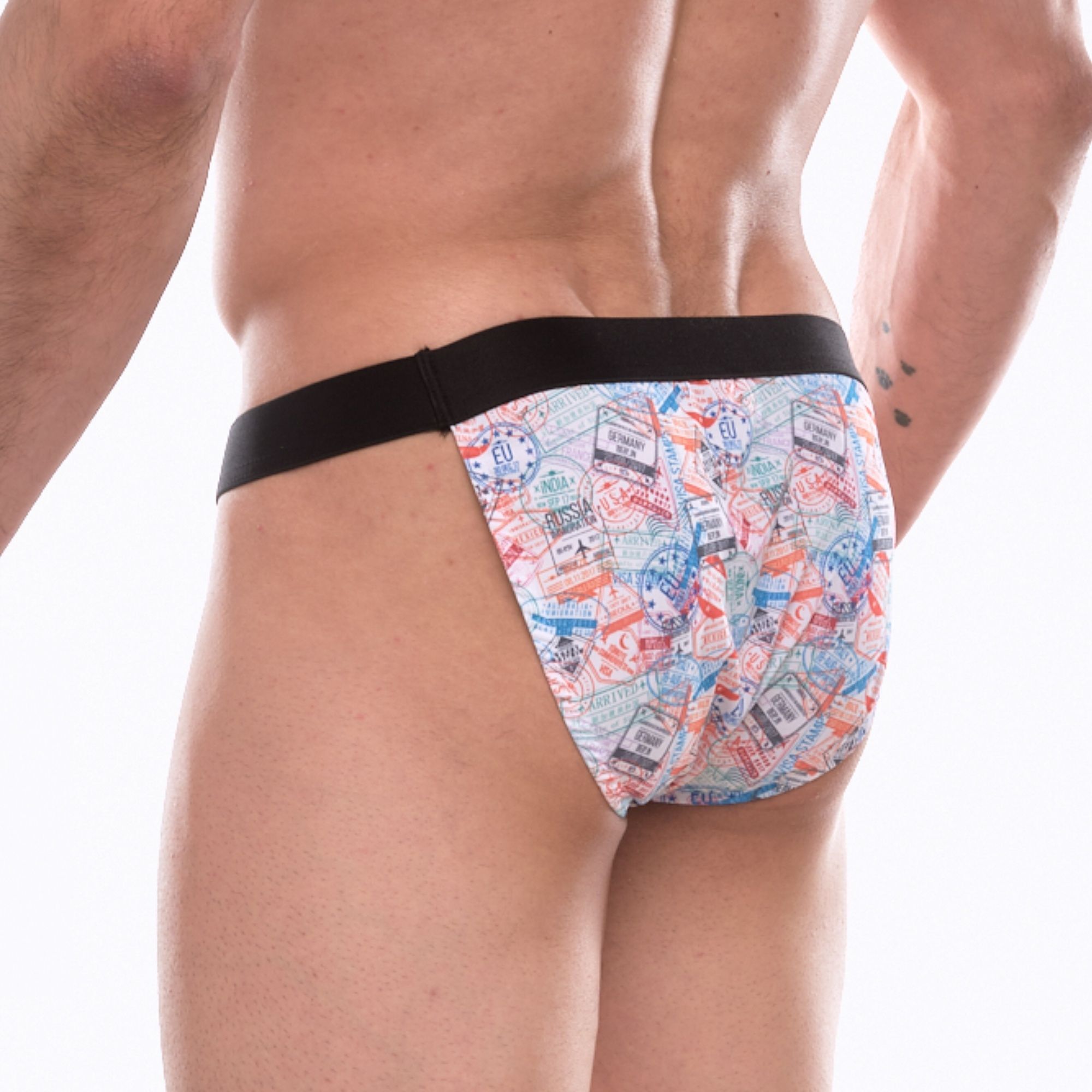 Мужские трусы-танга с принтом в виде цветных штампов