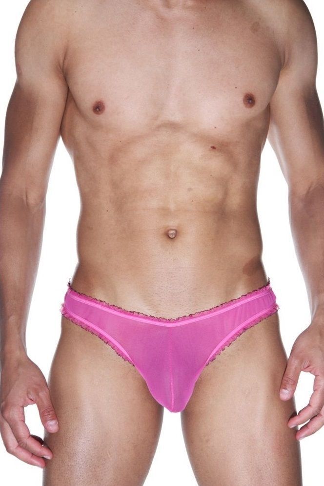 Мужские ярко-розовые трусы-бразилиана с рюшевой отделкой