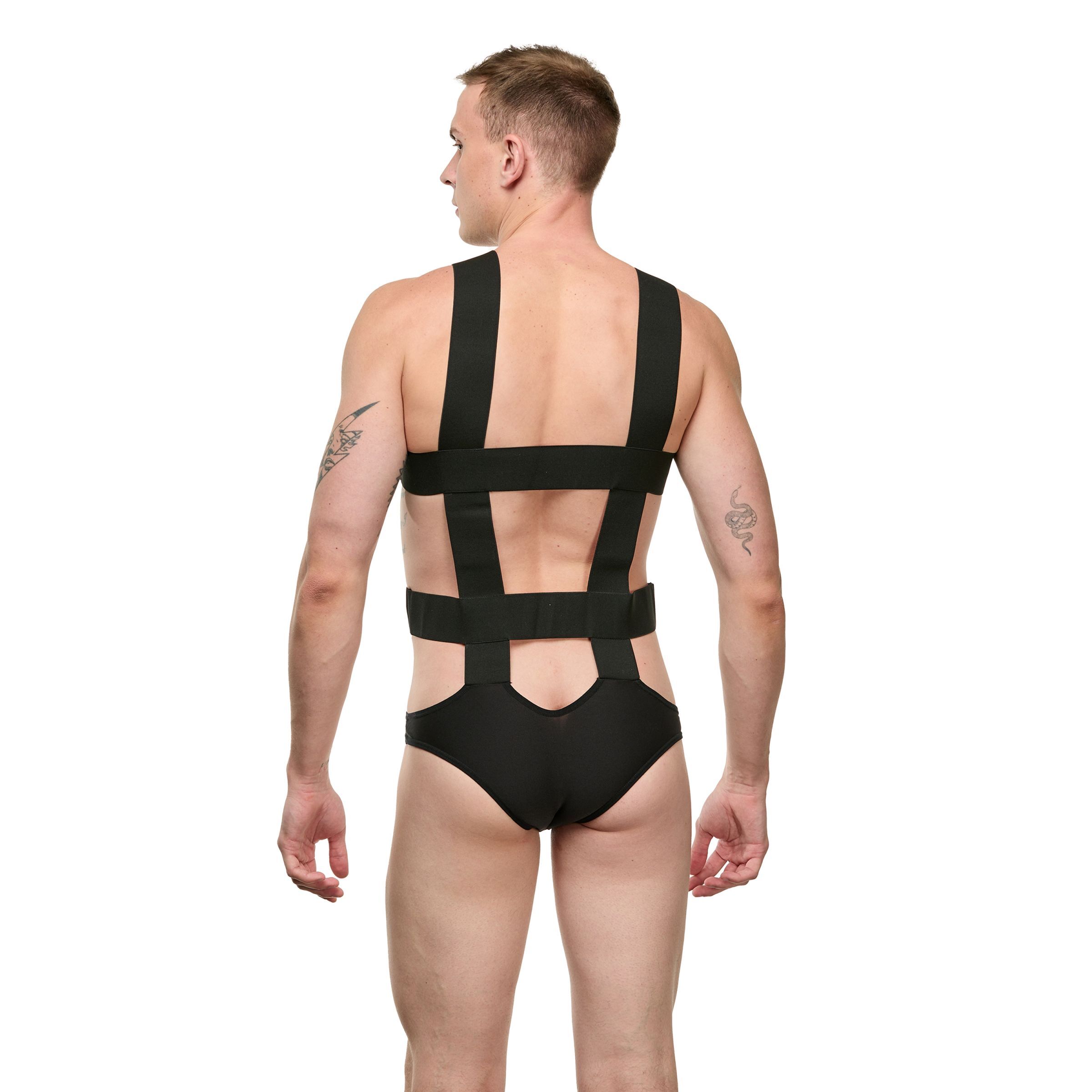 Мужское черное боди с широкими эластичными ремешками