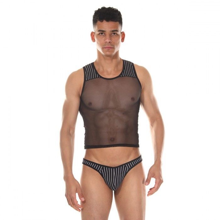 Мужской комплект: короткая майка и трусы-тонги в полоску