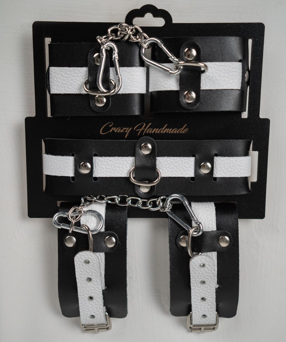 Набор фиксаторов из черной и белой натуральной кожи