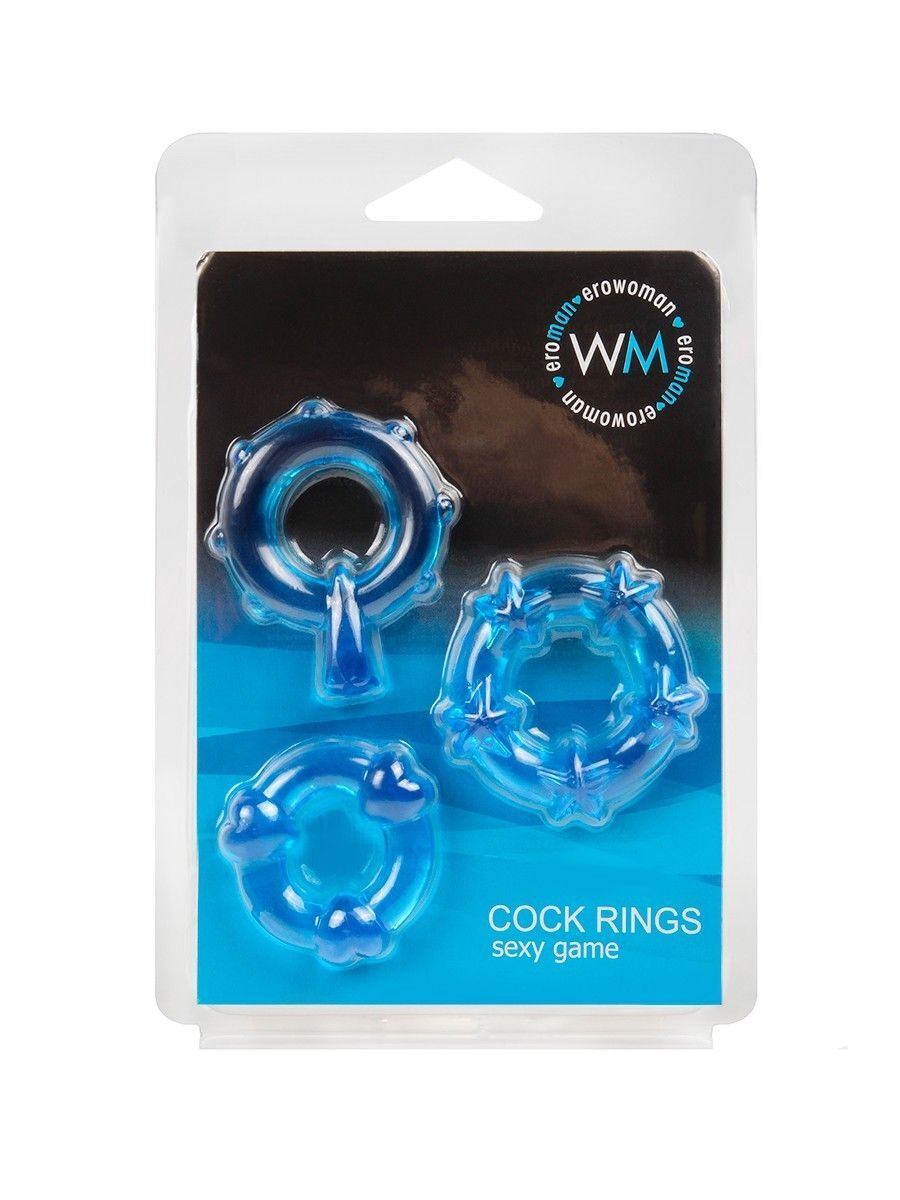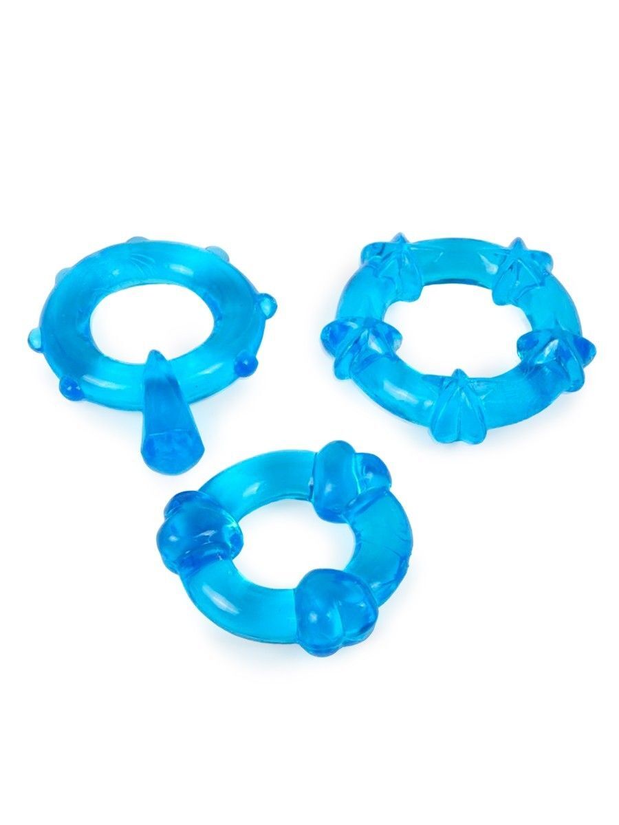 Набор из 3 синих эрекционных колец с различным рельефом