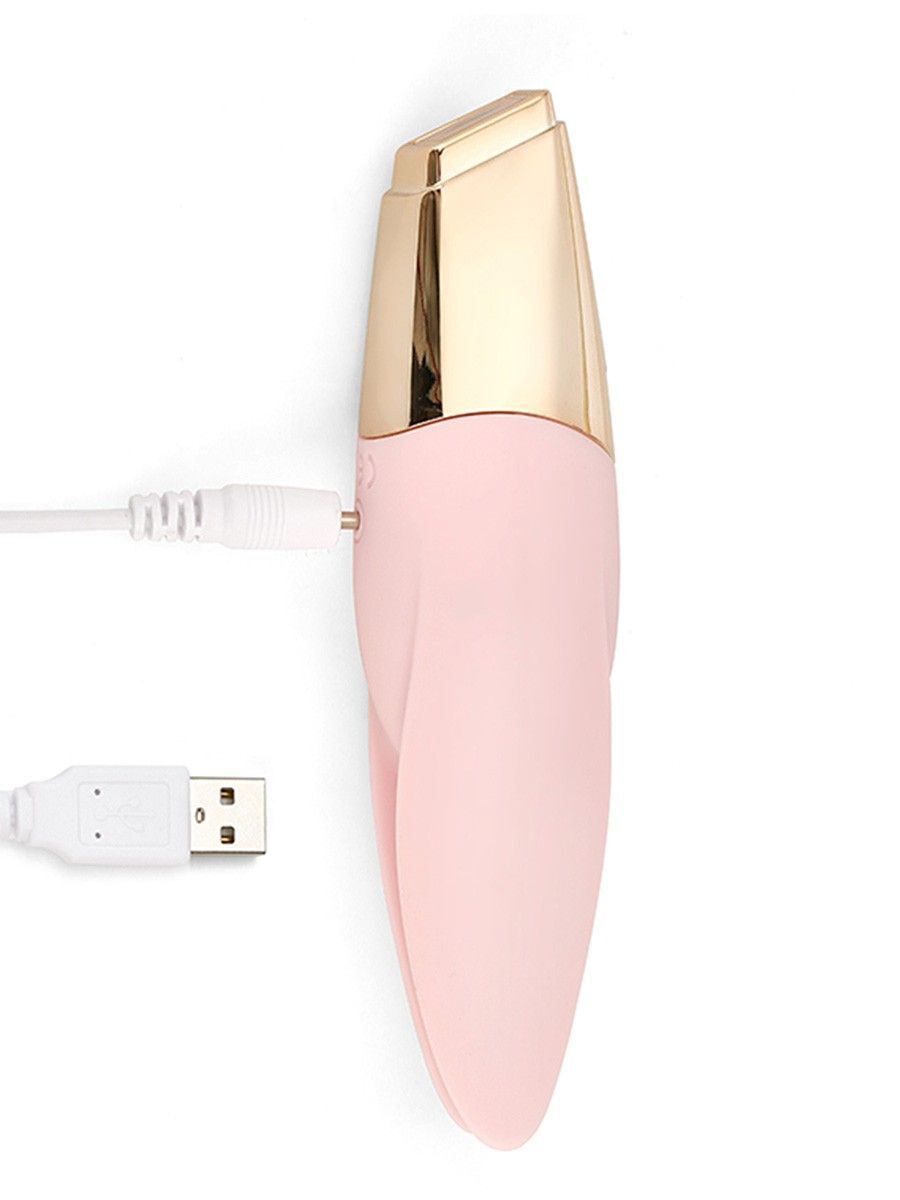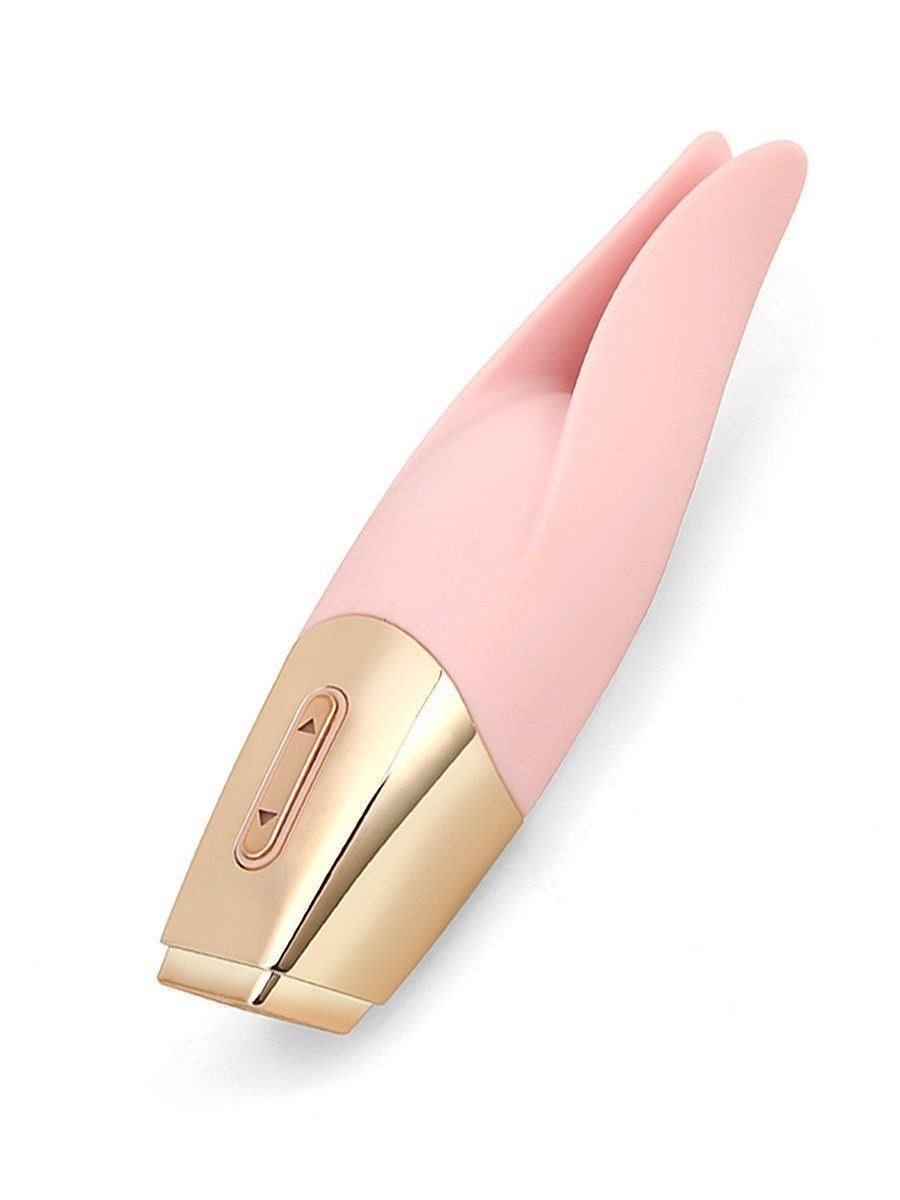 Нежно-розовый мини-вибратор с раздвоенным кончиком - 12,3 см.