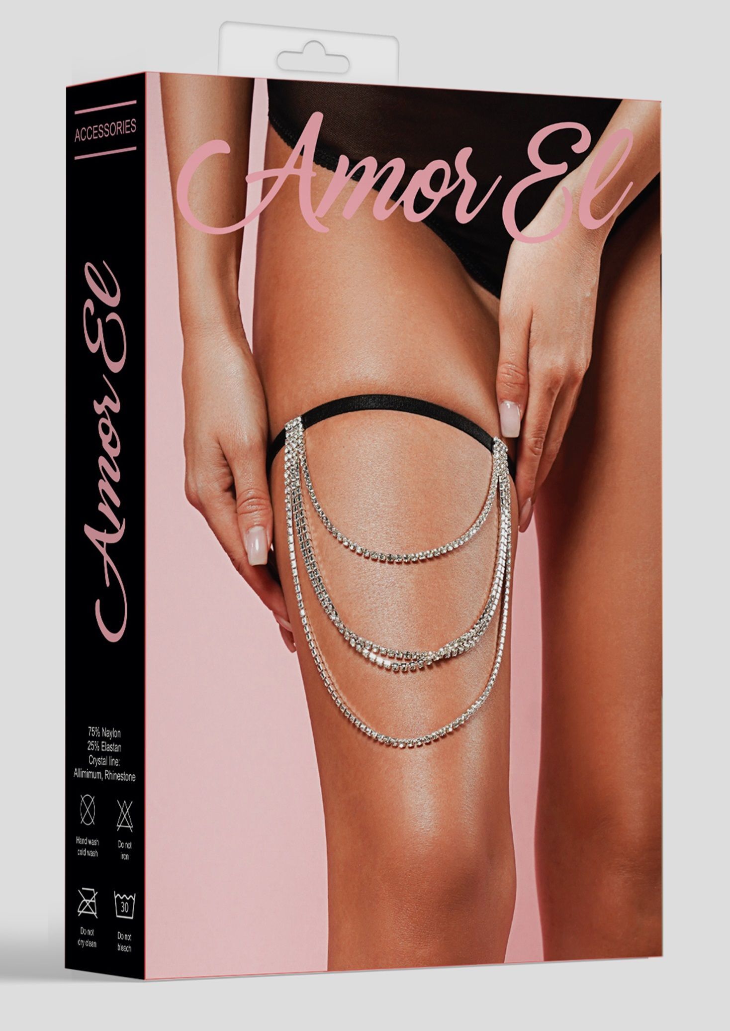 Оригинальная подвязка на ногу с цепочками из кристаллов