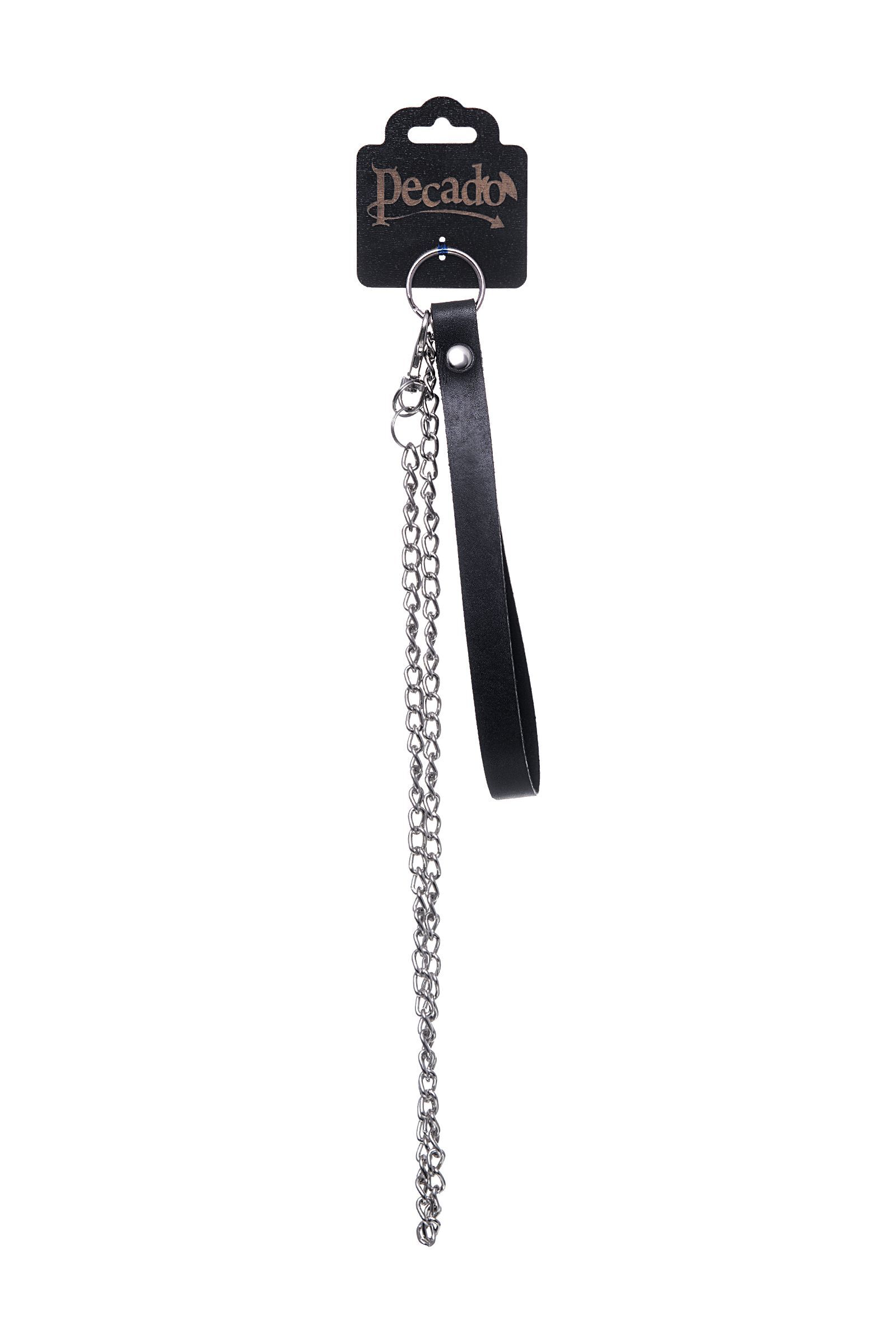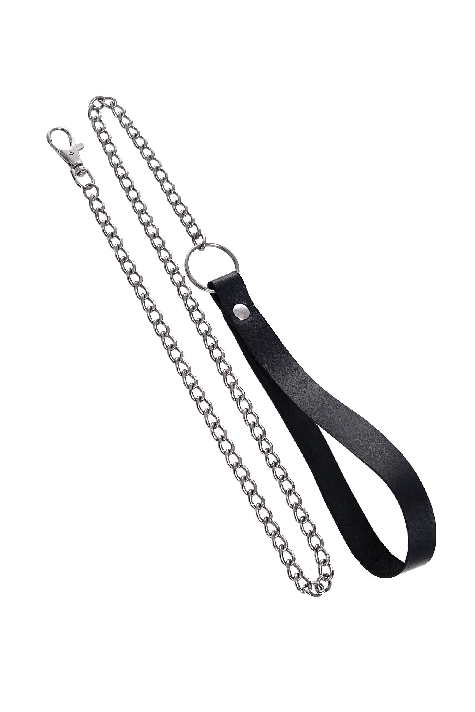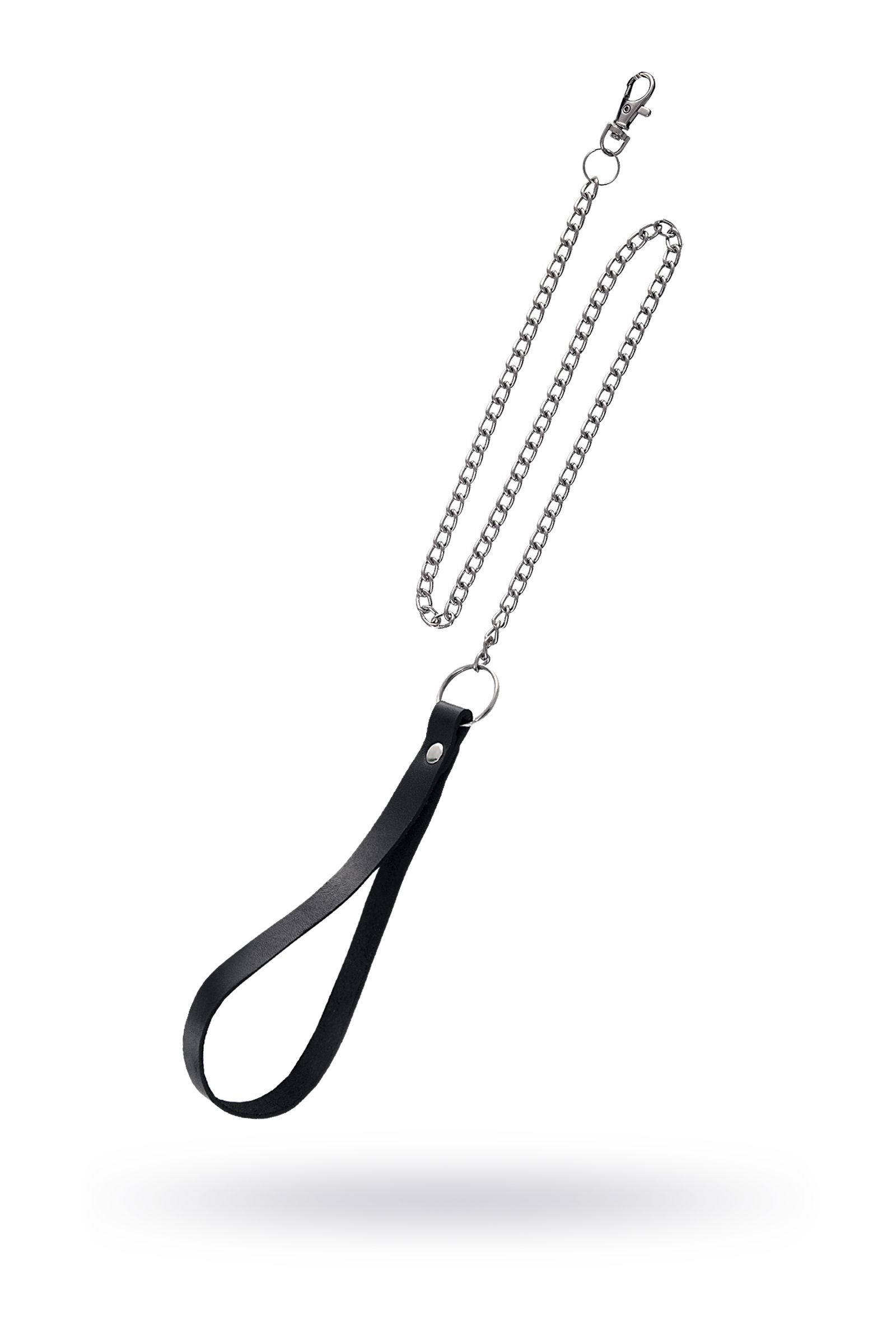 Поводок с ручкой из черной натуральной кожи и карабином для ошейника