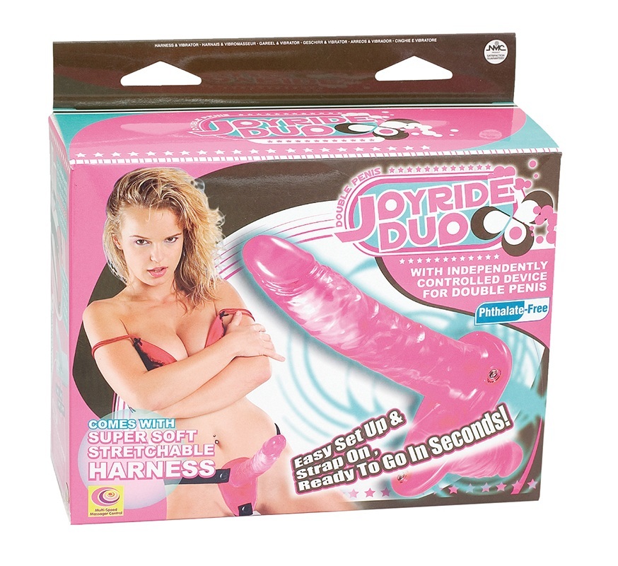 Поясной розовый виброфаллос с вагинальной пробкой - 17,5 см.
