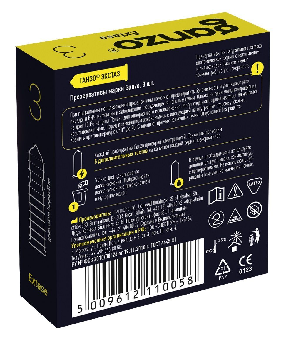 Презервативы анатомической формы с точечной и ребристой структурой Ganzo Extase - 3 шт.