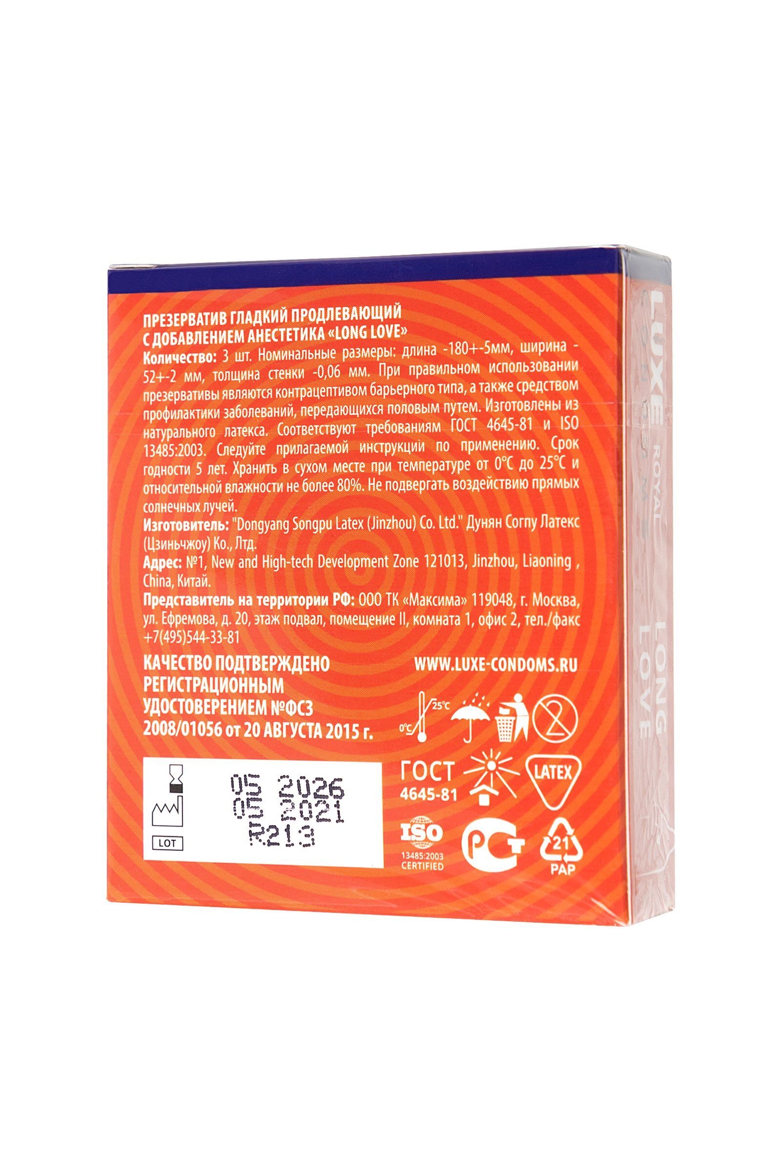 Презервативы с продлевающим эффектом LUXE Royal Long Love - 3 шт.