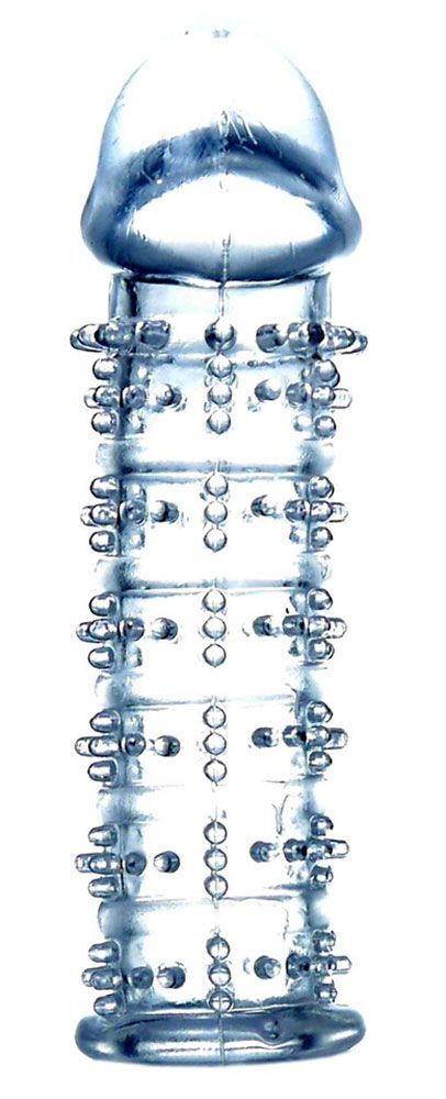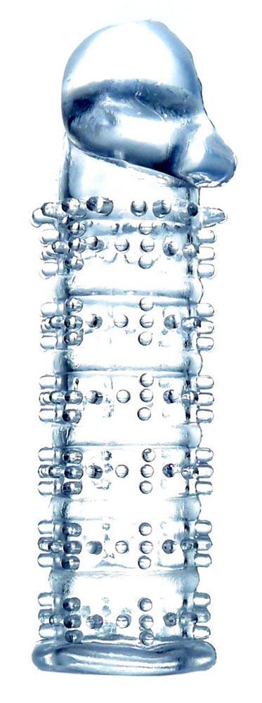 Прозрачная насадка на пенис с рельефом - 12 см.