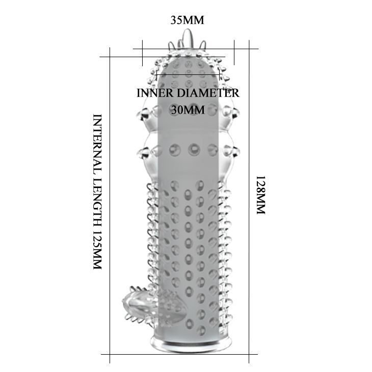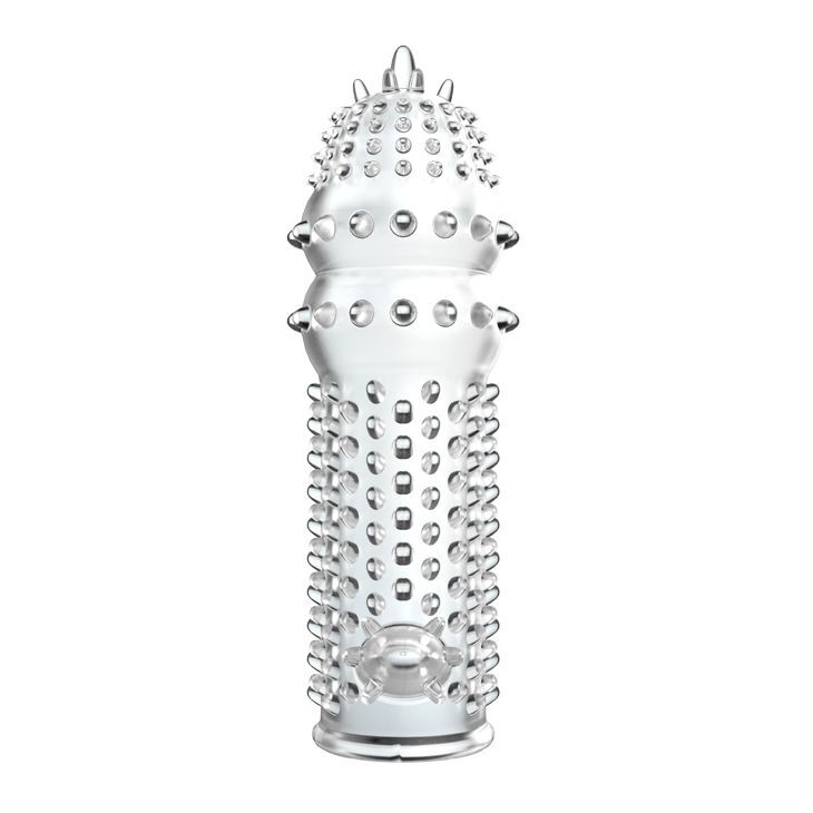 Прозрачная насадка на пенис с шипами и стимулятором клитора - 12,8 см.