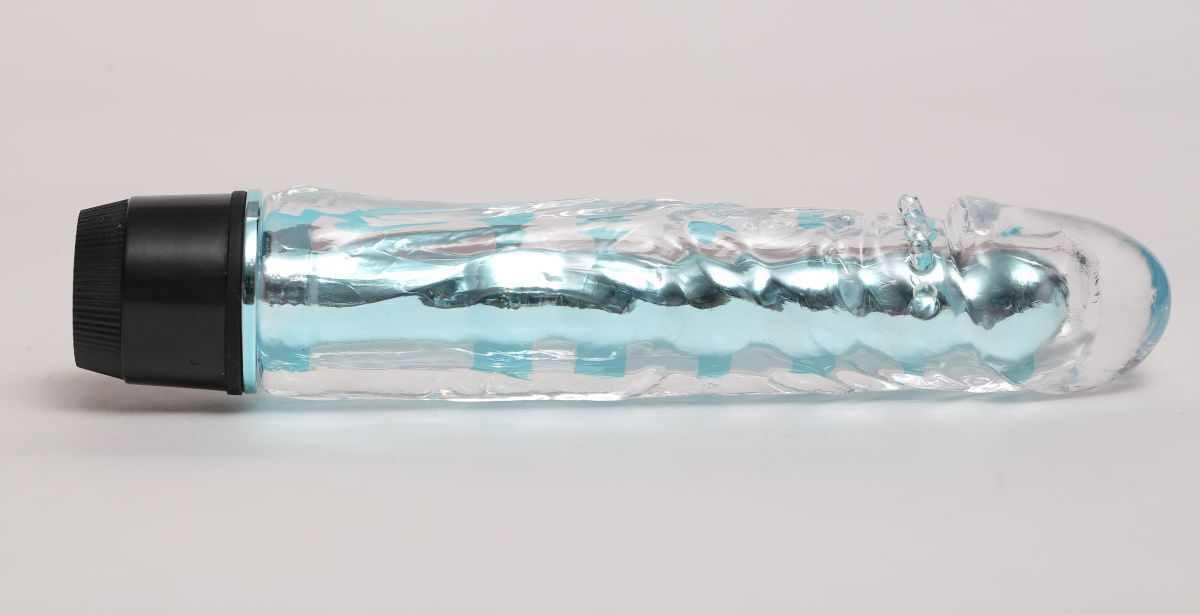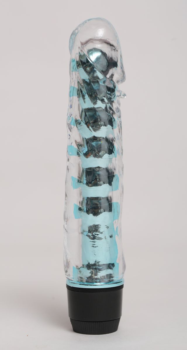 Прозрачно-голубой вибратор с пупырышками - 17,5 см.
