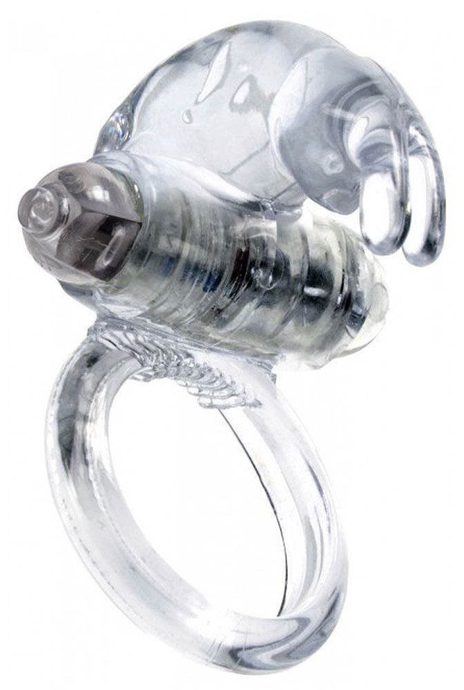 Прозрачное эрекционное виброкольцо с клиторальным зайчиком