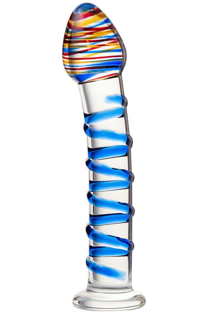 Прозрачный фаллос из стекла со спиралью - 18 см.