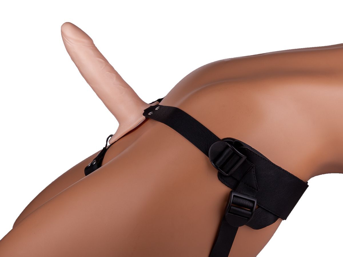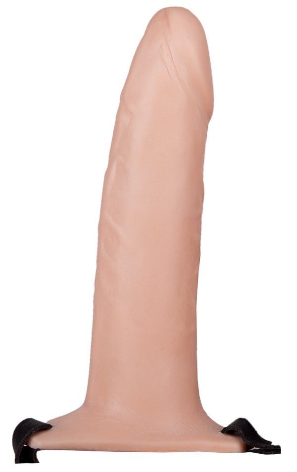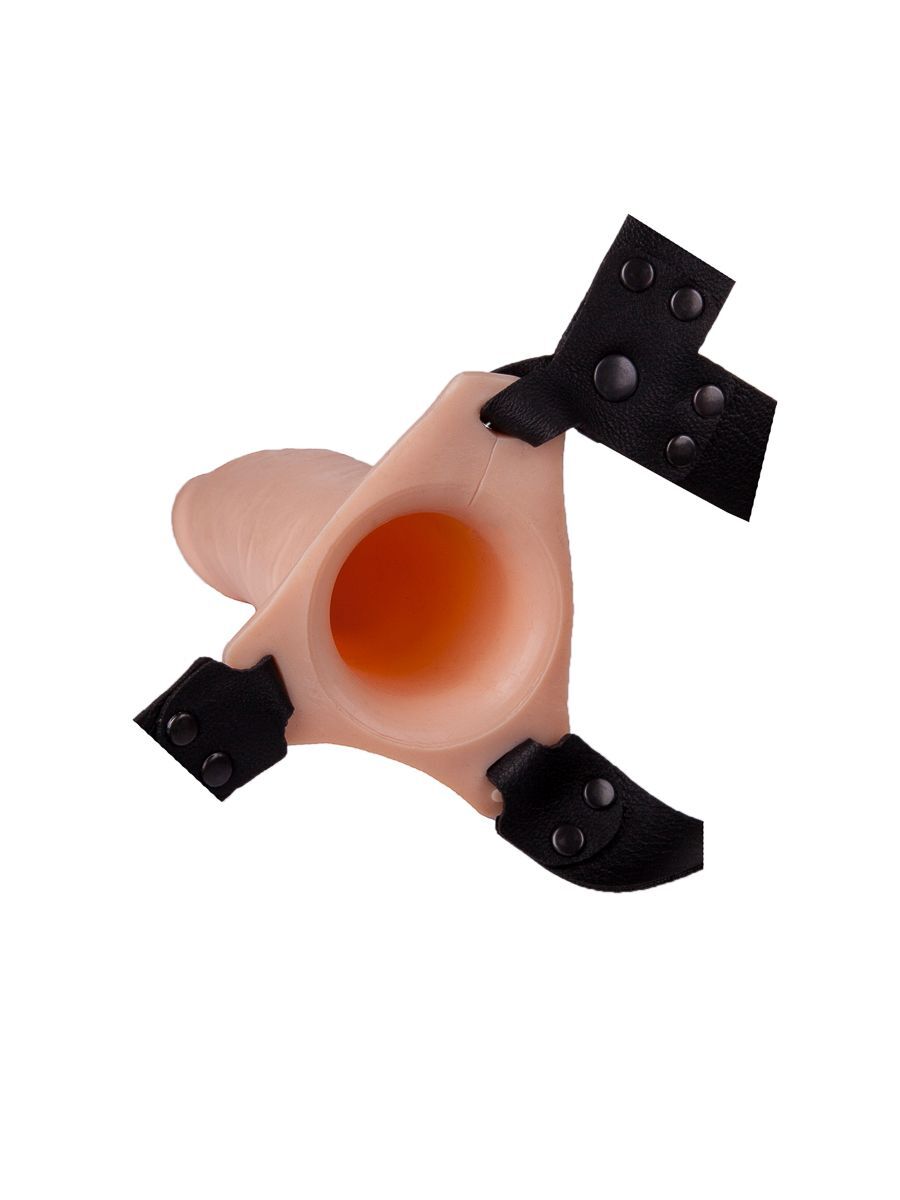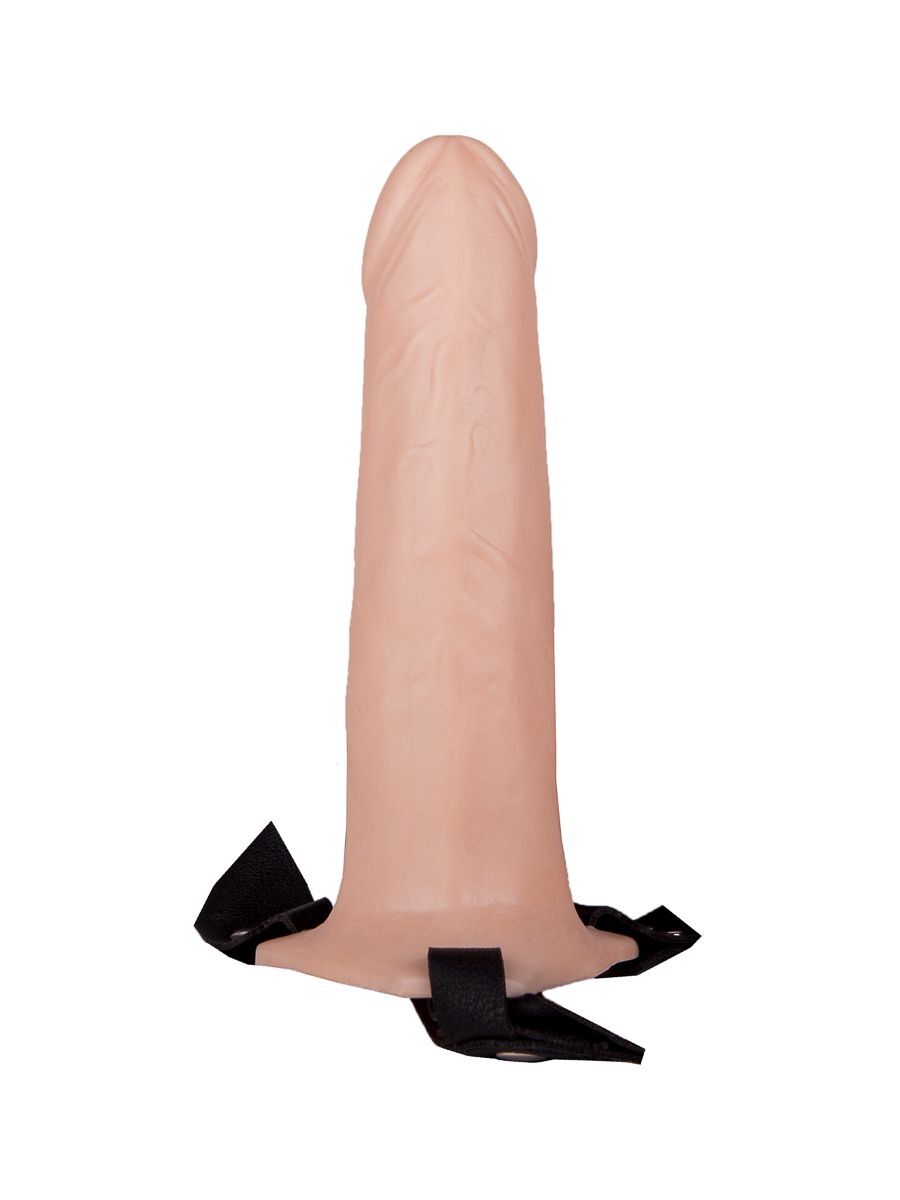 Пустотелый реалистичный фаллопротез на ремешках с заклепками - 16,5 см.
