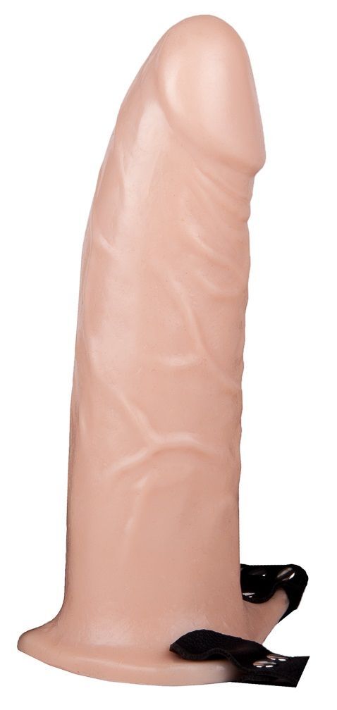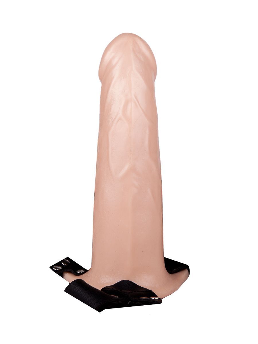 Пустотелый реалистичный фаллопротез на ремешках с заклепками - 17,5 см.