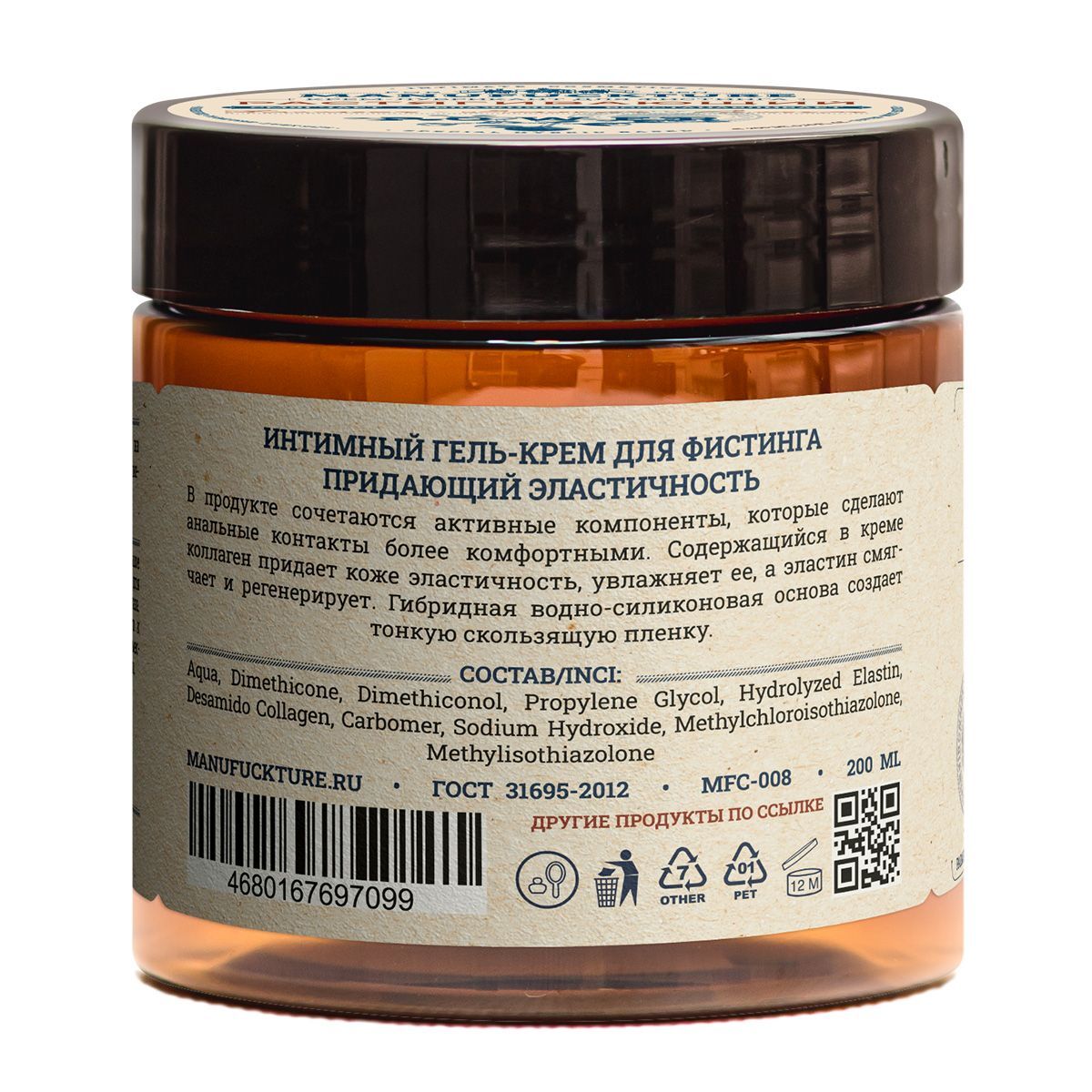 Растягивающий интимный гель-крем для фистинга с коллагеном - 200 мл.