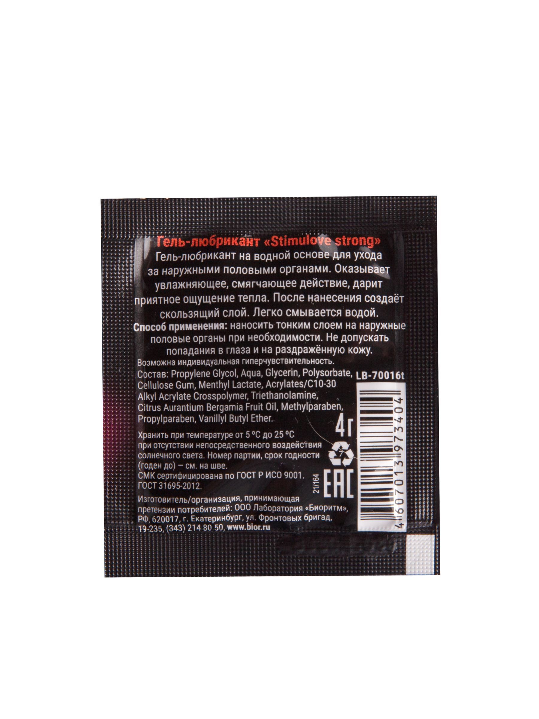 Разогревающий гель-лубрикант Stimulove Strong в одноразовой упаковке - 4 гр.