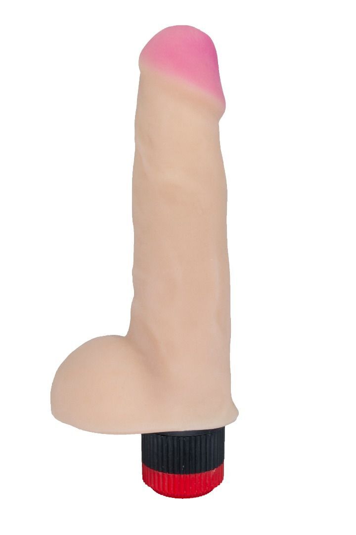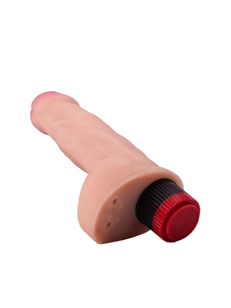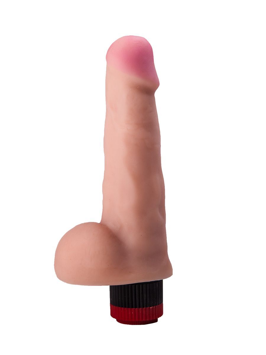 Реалистичный фаллоимитатор с вибрацией и мошонкой - 20,2 см.