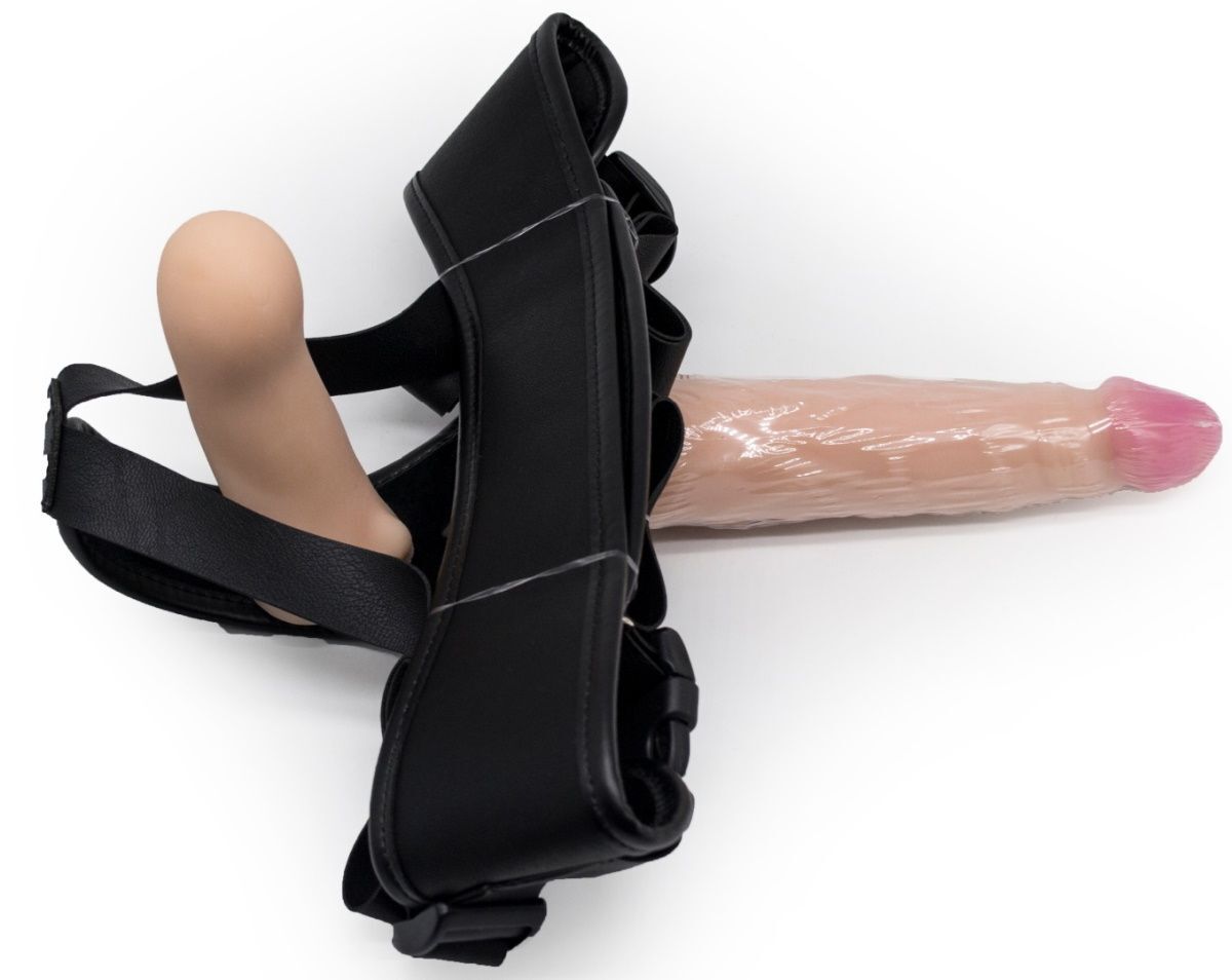 Реалистичный страпон Woman Midi с вагинальной пробкой - 19 см.