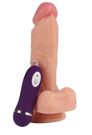 Реалистичный вибратор REAL с пультом управления - 17 см.