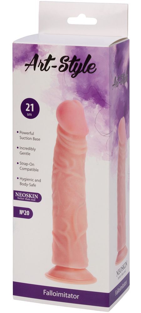 Рельефный фаллоимитатор на подошве-присоске ART-Style №20 - 22 см.