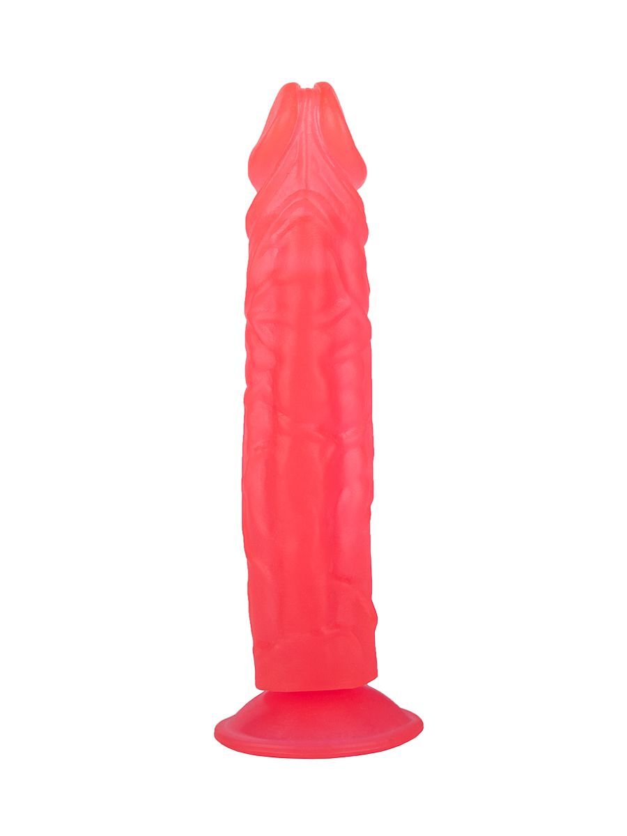 Рельефный розовый фаллоимитатор на присоске - 19,5 см.