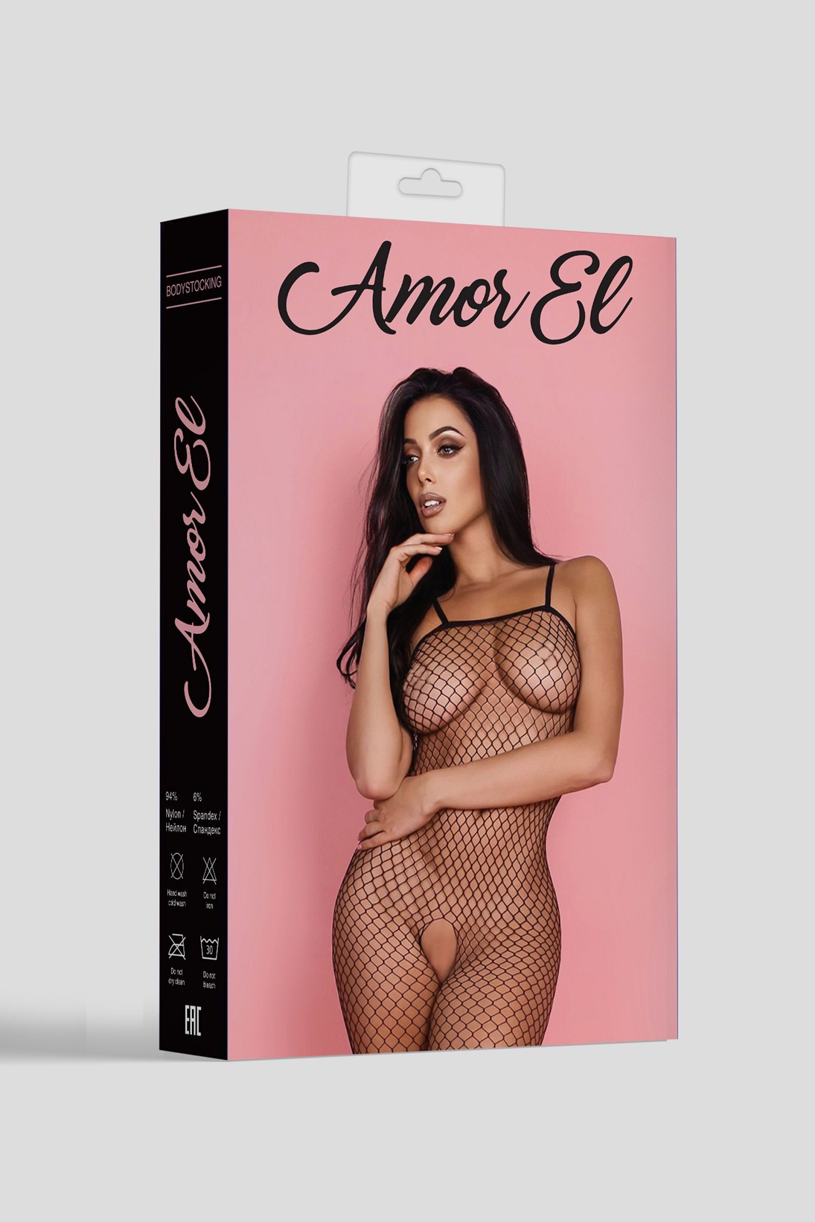 Роскошный сетчатый боди-комбинезон на бретельках с открытым доступом