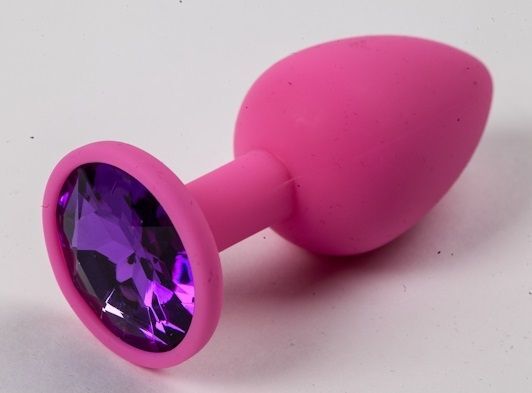 Розовая анальная пробка с фиолетовым кристаллом - 9,5 см.