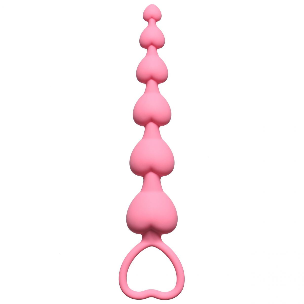 Розовая анальная цепочка Heart s Beads Pink - 18 см.