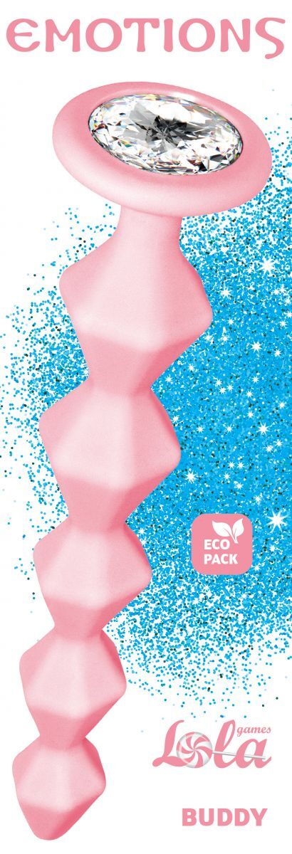 Розовая анальная цепочка с кристаллом Buddy - 17,7 см.