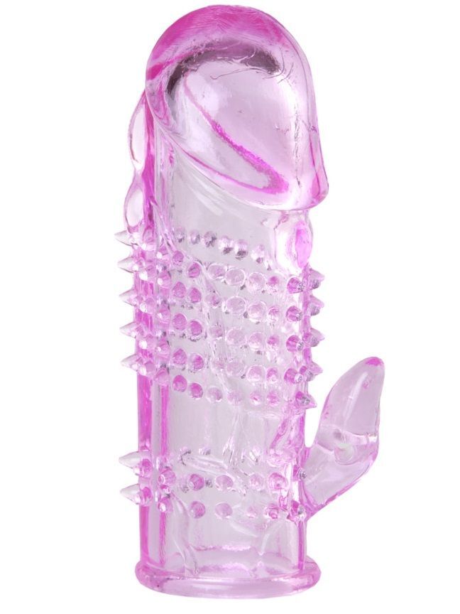 Розовая гелевая насадка с клиторальным отростком - 13,5 см.