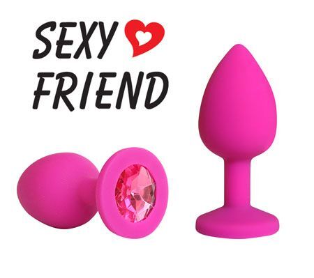 Розовая конусовидная анальная пробка с малиновым кристаллом - 7,3 см.