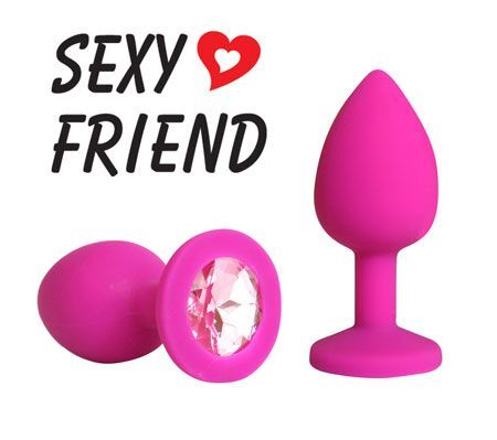 Розовая конусовидная анальная пробка с розовым кристаллом - 7,3 см.