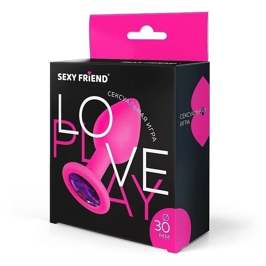 Розовая силиконовая анальная втулка с фиолетовым кристаллом - 7,3 см.