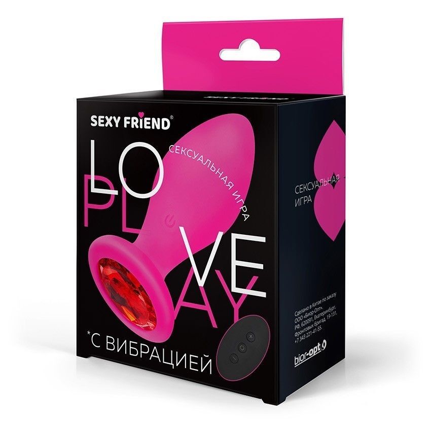 Розовая вибровтулка с красным кристаллом и пультом ДУ - 9 см.