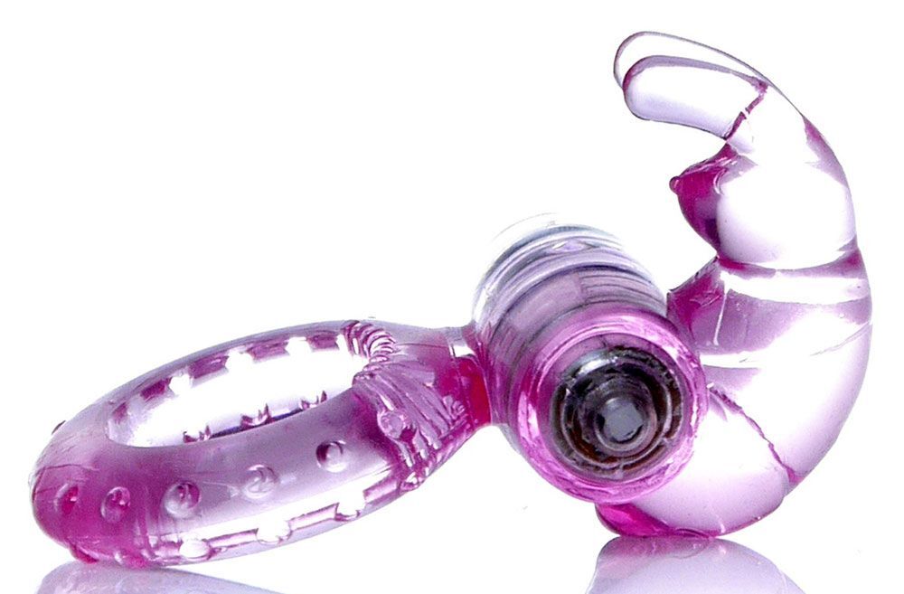 Розовое эрекционное виброкольцо с клиторальным зайчиком