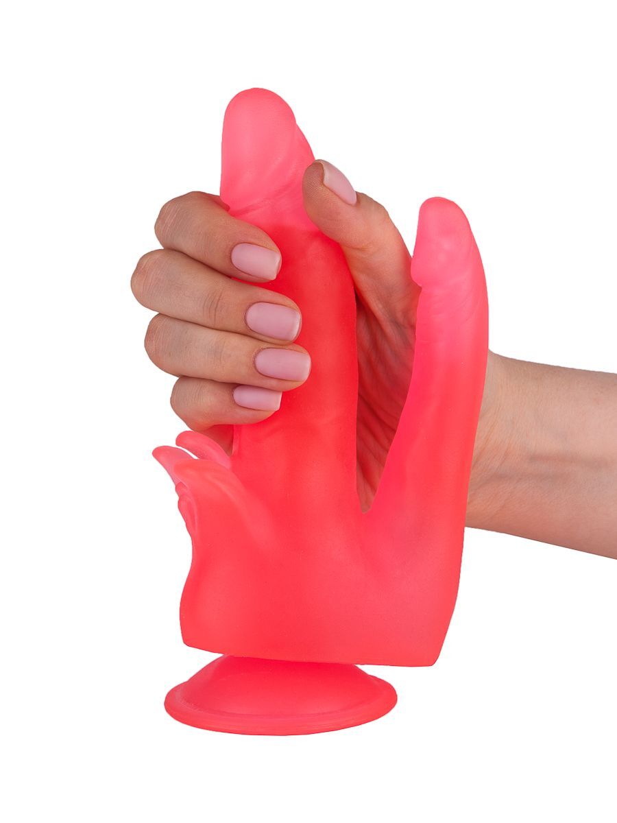 Розовый двойной фаллоимитатор с лепестками и присоской - 17 см.