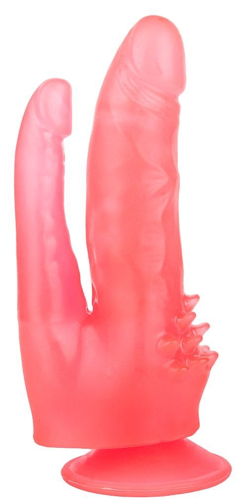 Розовый двойной фаллоимитатор с шипами и присоской - 17 см.