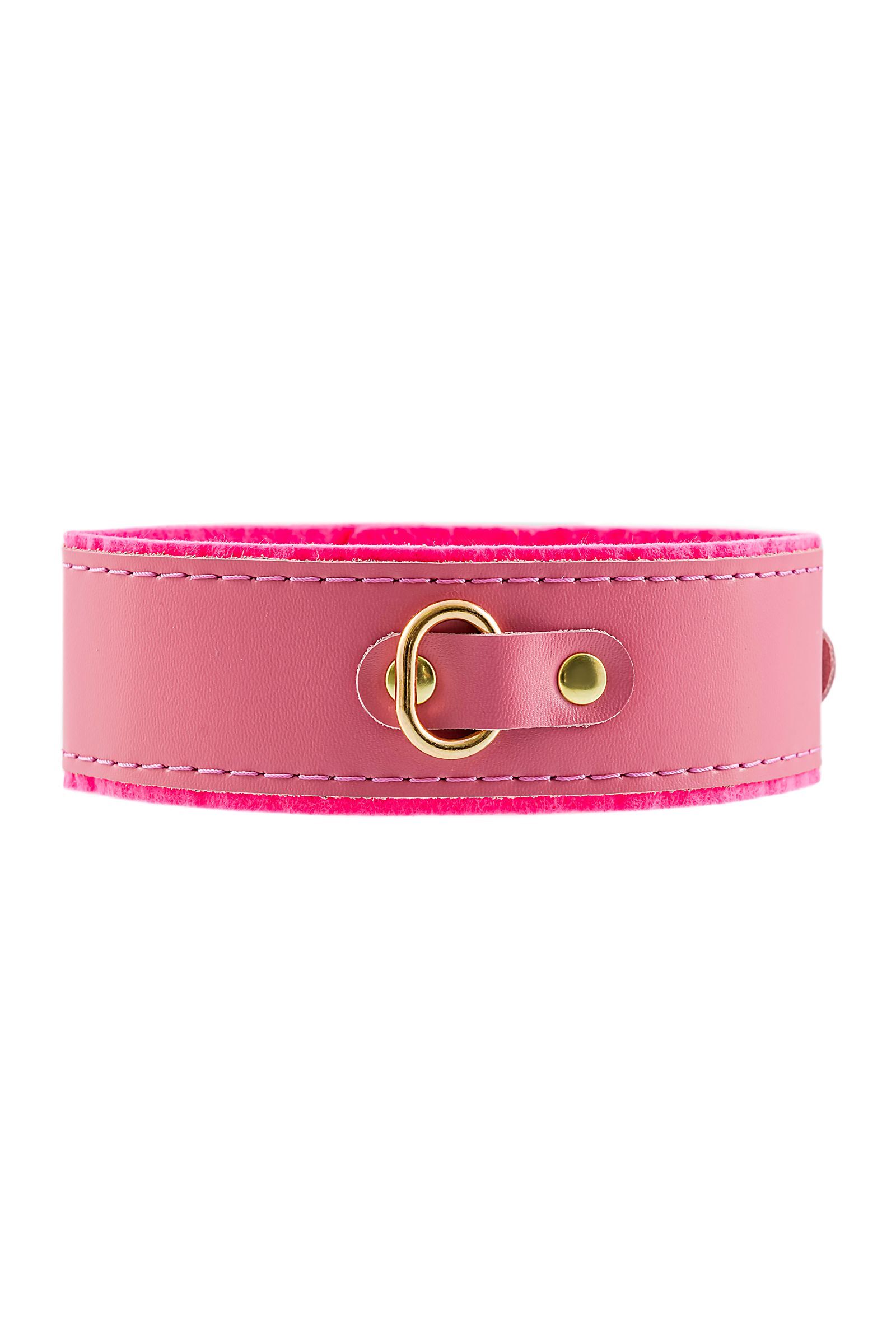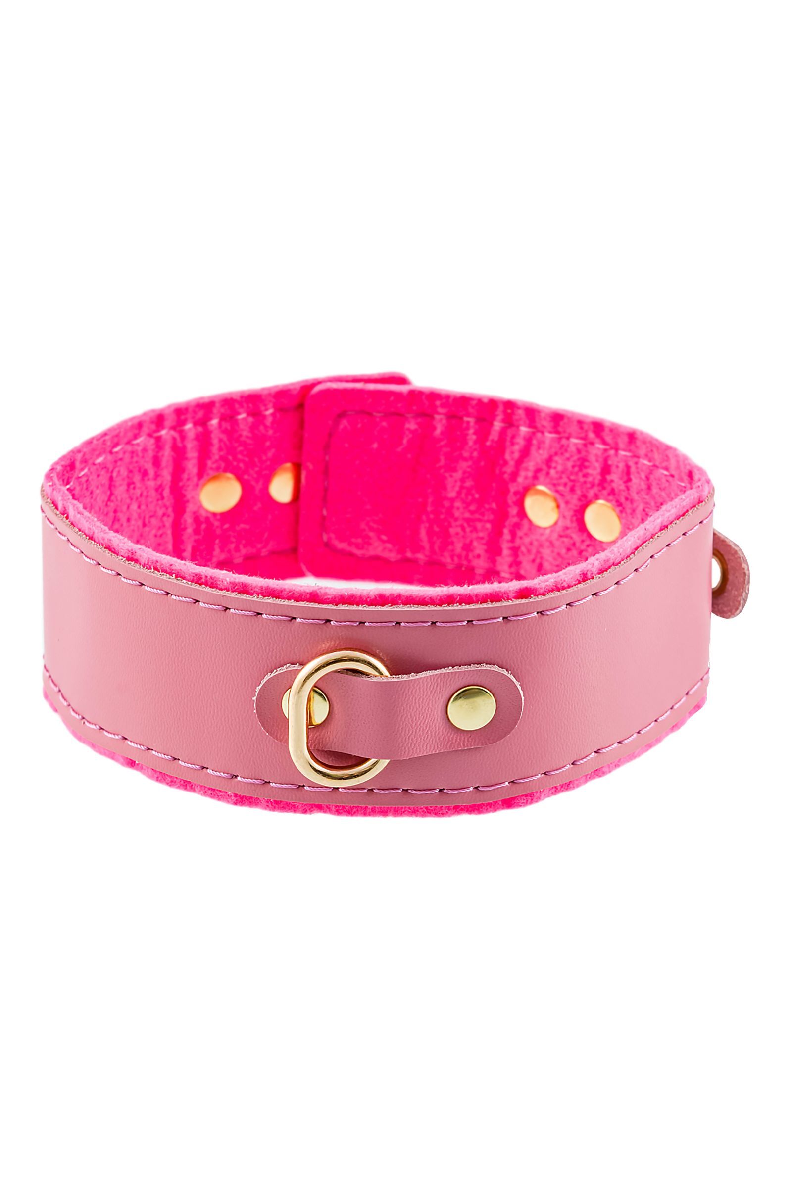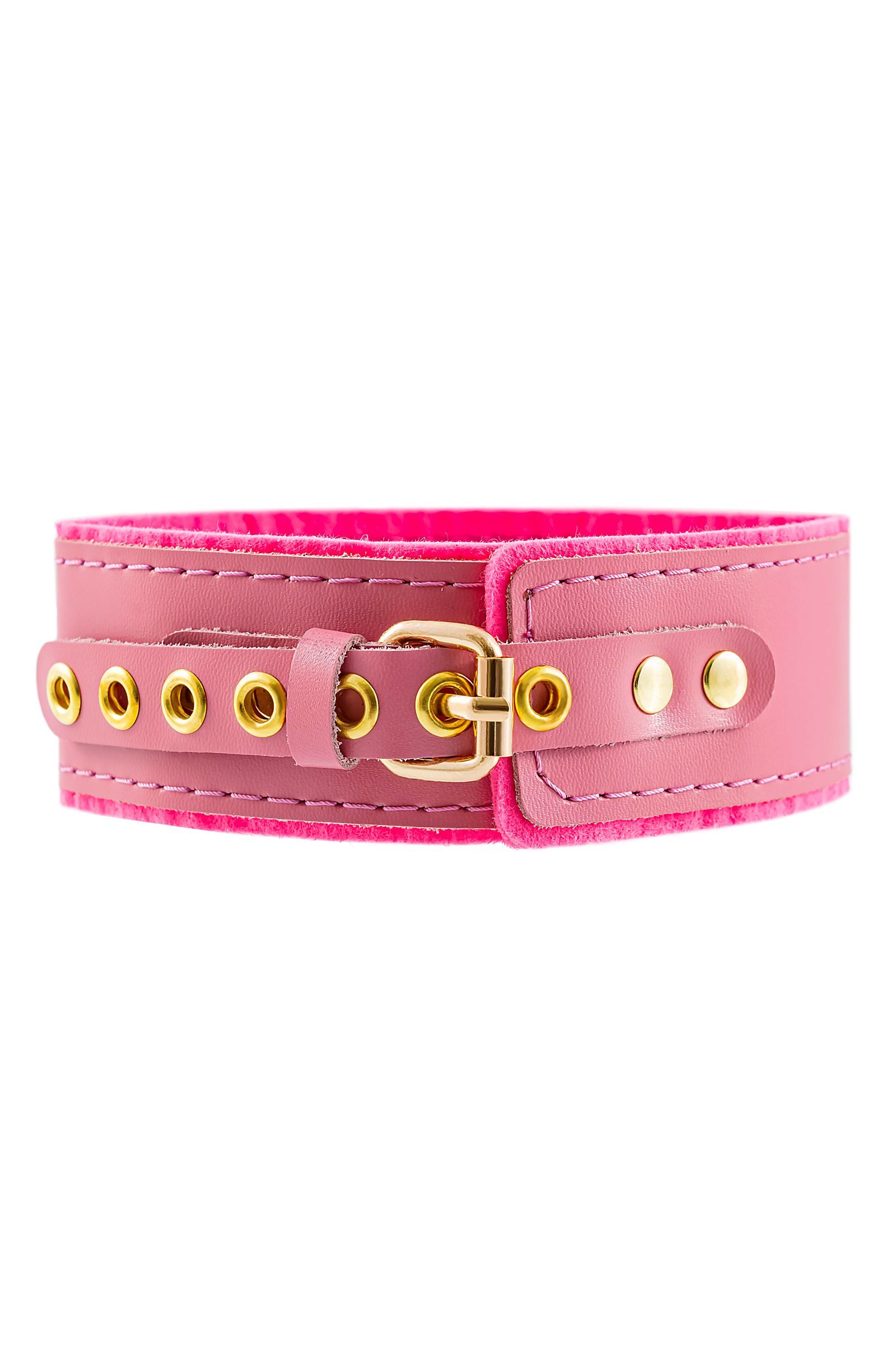 Розовый двуслойный кожаный ошейник с подкладкой из фетра