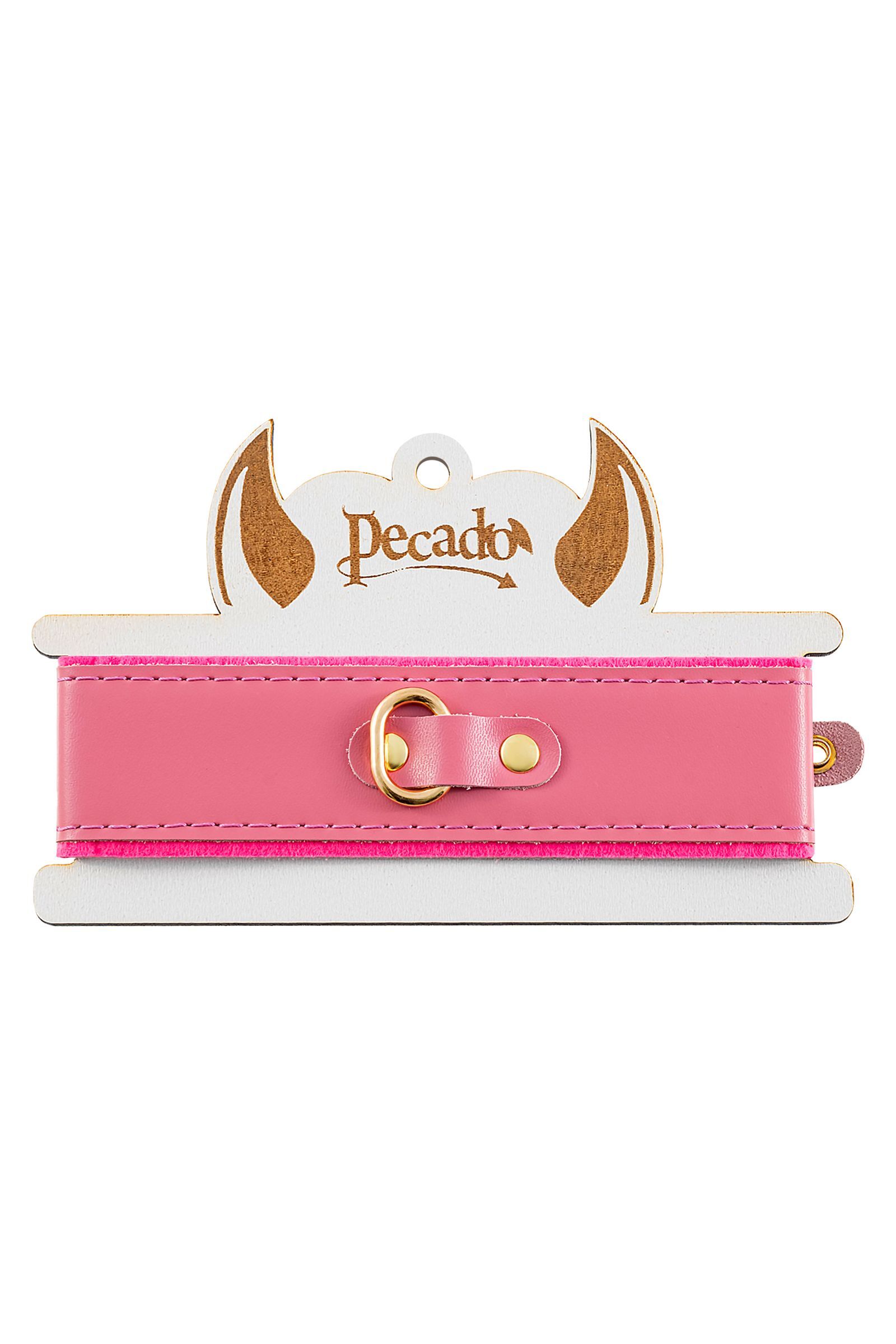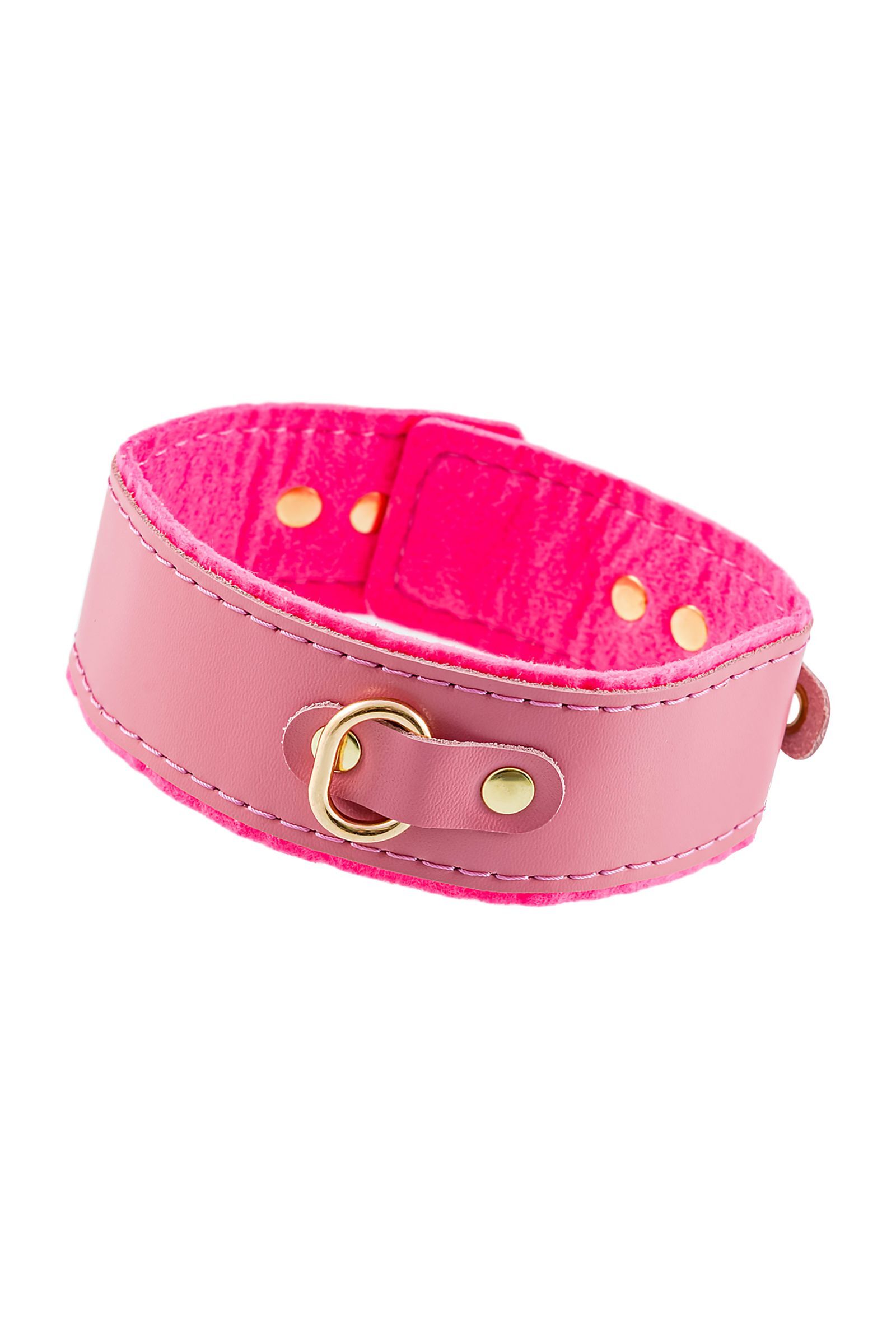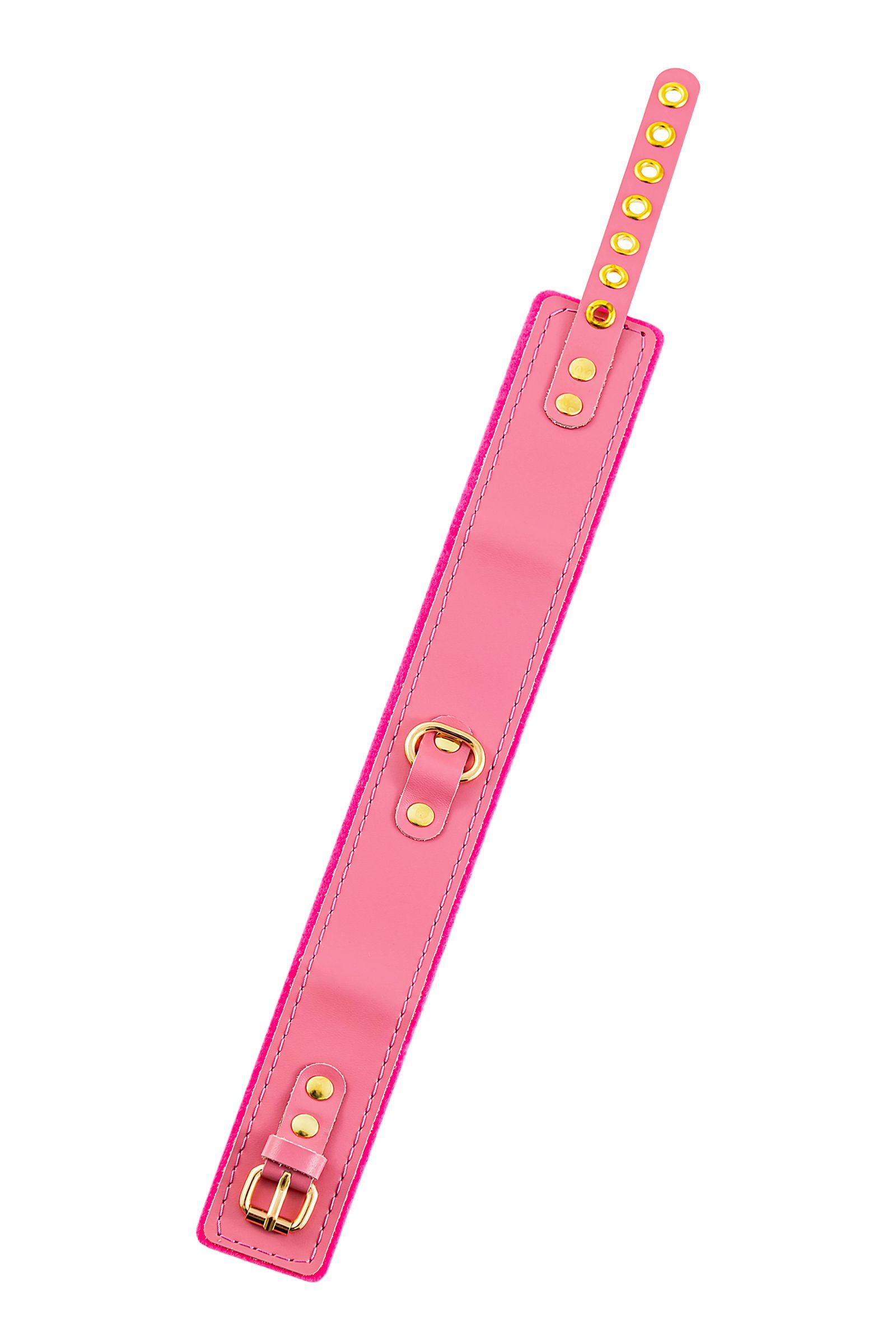 Розовый двуслойный кожаный ошейник с подкладкой из фетра