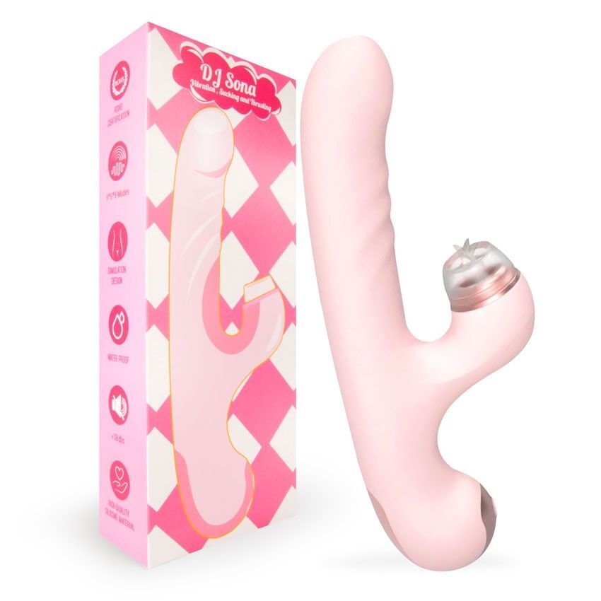 Розовый двусторонний вибромассажер DJ Sona - 23,2 см.